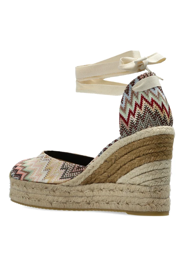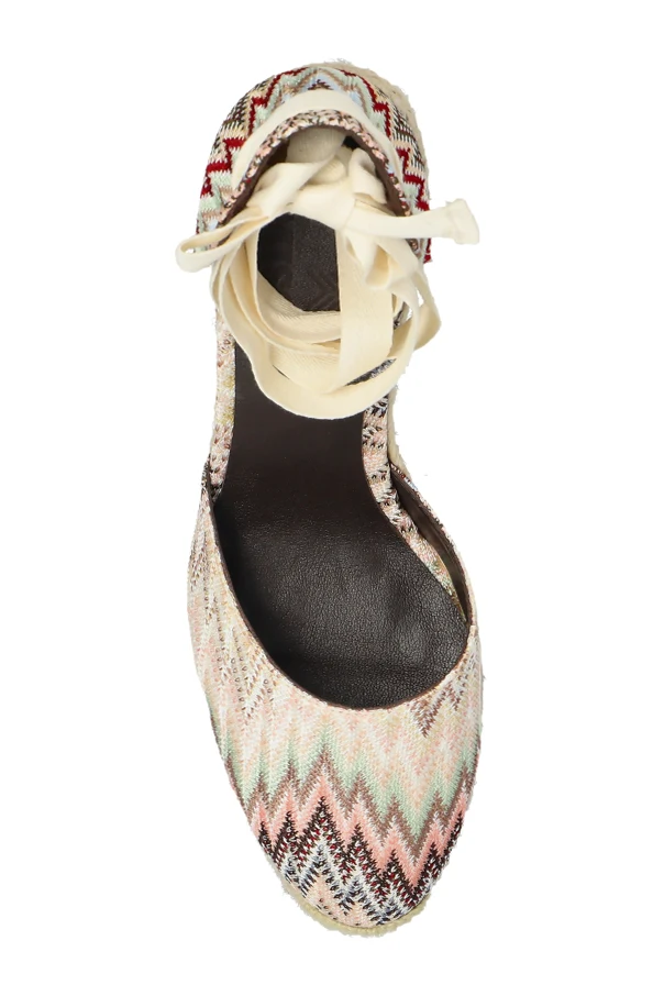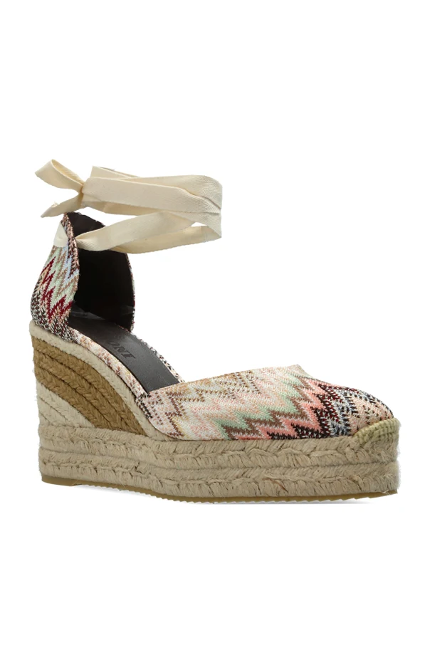 Buty na koturnie marki Missoni to synonim wyrafinowanego piękna w wielokolorowej odsłonie. Dominujący kolor: multikolor sprawia, że każda para jest wyjątkowa – zjawiskowy, zygzakowaty motyw zachwyca gamą beżu, różu, brązu, zieleni i czerni, harmonijnie podkreślając boho charakter projektu.