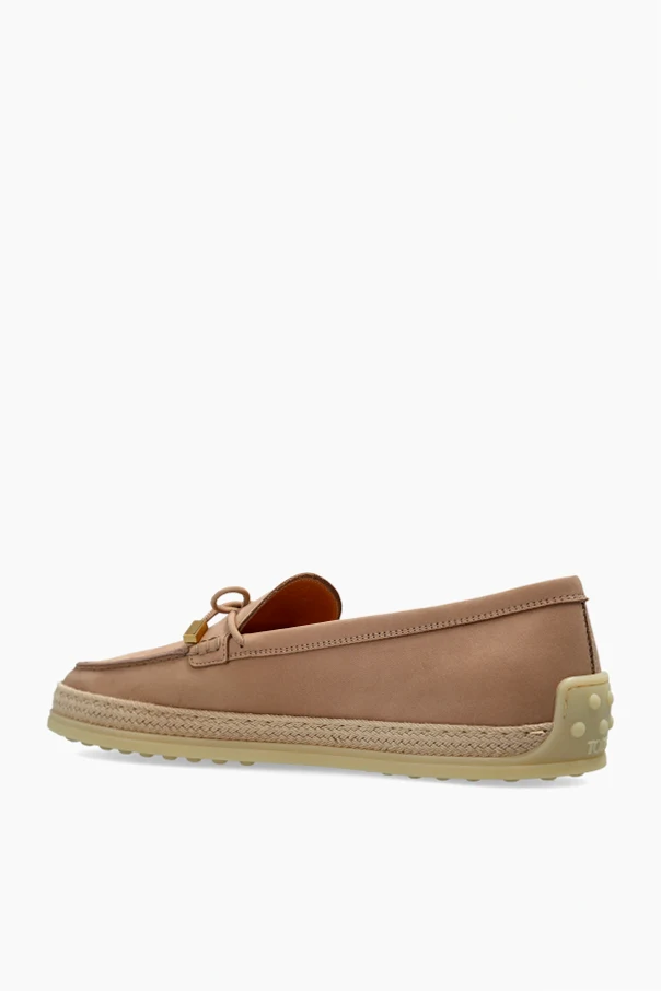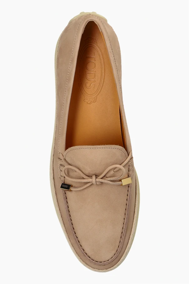 Buty typu loafers marki Tod’s to synonim ponadczasowego stylu i wyrafinowania. Ich beżowy odcień uwydatnia elegancję, a szlachetna, matowa skóra z finezyjnym, zamszowym wykończeniem podkreśla ekskluzywny charakter obuwia. Smukła linia oraz zaokrąglony przód harmonijnie współgrają z opływowym profilem, tworząc sylwetkę idealną na każdą okazję.