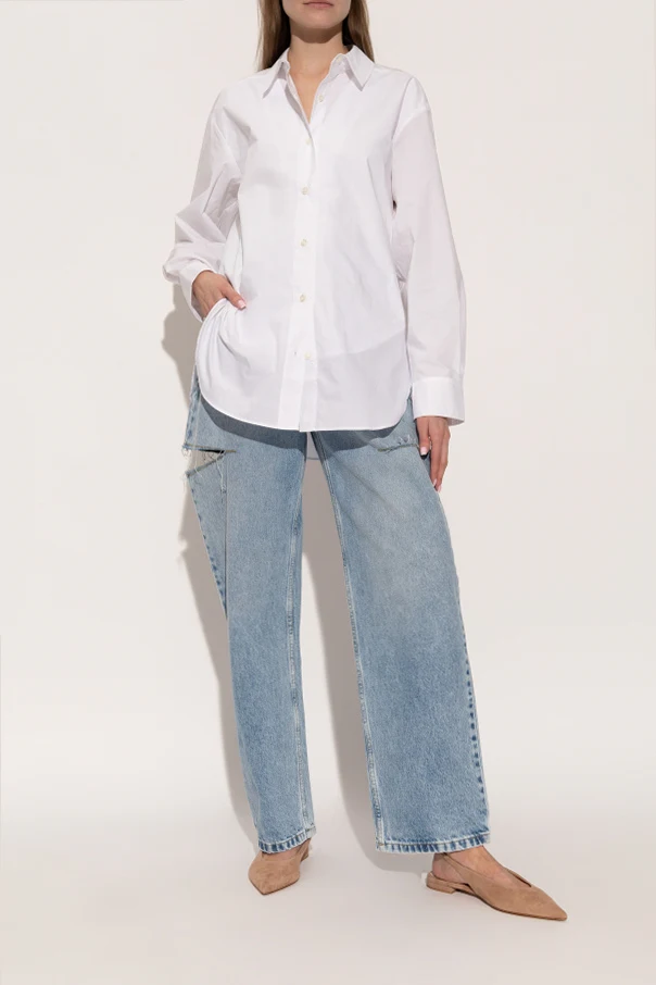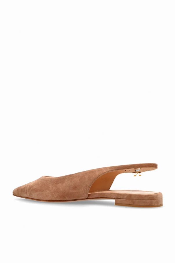 Charakterystyczne wycięcie typu slingback — z otwartą piętą i regulowanym paskiem na klamerkę — zapewnia nienaganne dopasowanie oraz lekkość formy. Niski obcas w tym samym, beżowym tonie oferuje wygodę podczas codziennych aktywności, a wnętrze z jasnej skóry, ozdobione złotym logo, podkreśla ekskluzywność detalu. Całość dopełnia dyskretny detal biżuteryjny przy pasku.