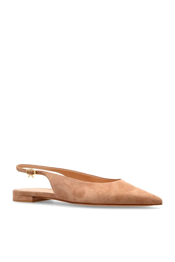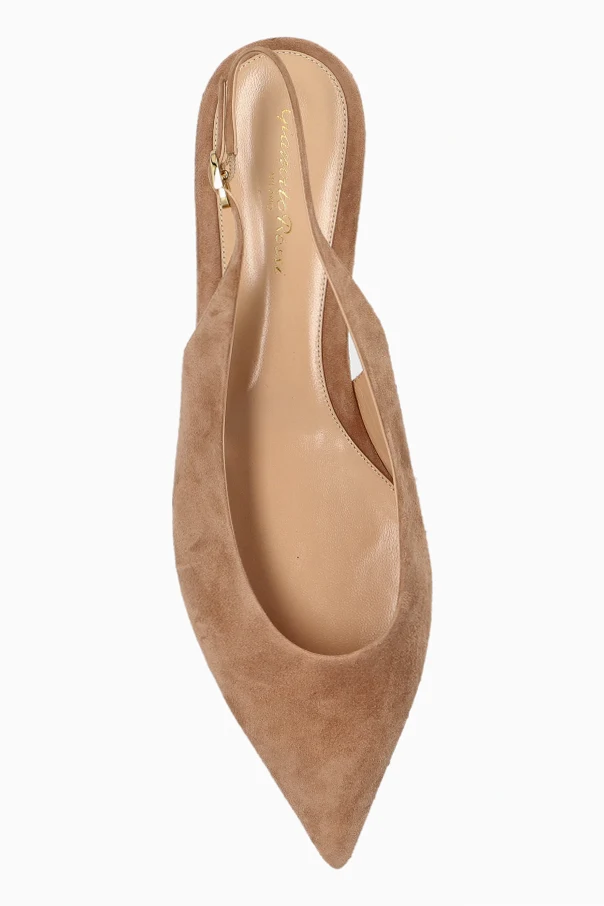 Skórzane baleriny Robbie marki Gianvito Rossi to ukłon w stronę wyrafinowanego minimalizmu oraz ponadczasowej klasyki. Model wyróżnia się podłużnym, mocno szpiczastym noskiem, który subtelnie wysmukla sylwetkę stopy, czyniąc stylizację niezwykle wytworną. Beżowy odcień, będący kwintesencją uniwersalnej elegancji, harmonijnie dopełnia matowa skóra zamszowa o jednolitej strukturze.