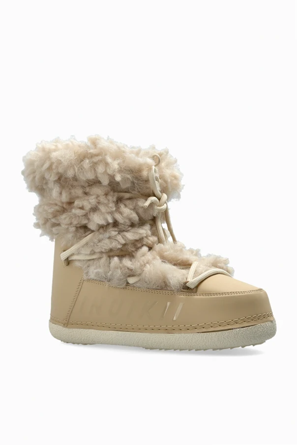 Efektowne sznurowania i przeszycia w tonacji beżu, podobnie jak szeroki, zaokrąglony nosek i solidna, podwyższona podeszwa z trwałej gumy, tworzą harmonijną kompozycję luksusu i funkcjonalności. Boczne wytłoczenie z logo INUIKII subtelnie podkreśla prestiżowy charakter obuwia, czyniąc je niepowtarzalnym elementem zimowej garderoby.