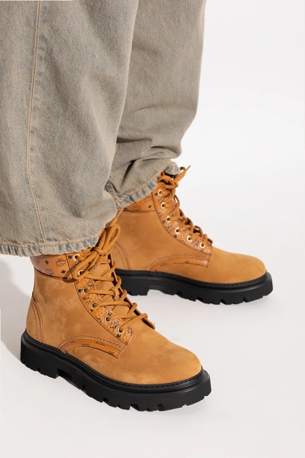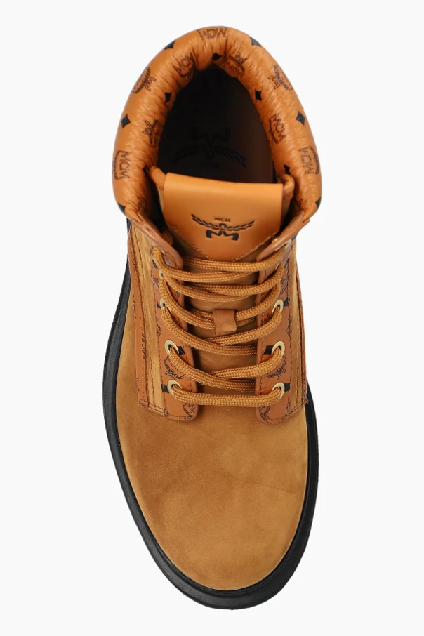 Zamszowe trapery marki MCM to wyrafinowane obuwie zaprojektowane z myślą o najbardziej wymagających miłośnikach mody. Ich klasyczna, masywna sylwetka oraz stabilna, wysoka cholewka zapewniają niebywały komfort i ochronę stopy, a wyraźnie zaokrąglony nosek podkreśla solidność formy. Zamsz najwyższej jakości, cechujący się matowym wykończeniem i miękkością, tworzy harmonijną całość z ozdobnym kołnierzem wykonanym ze skóry sygnowanej powtarzalnym, geometrycznym monogramem MCM.