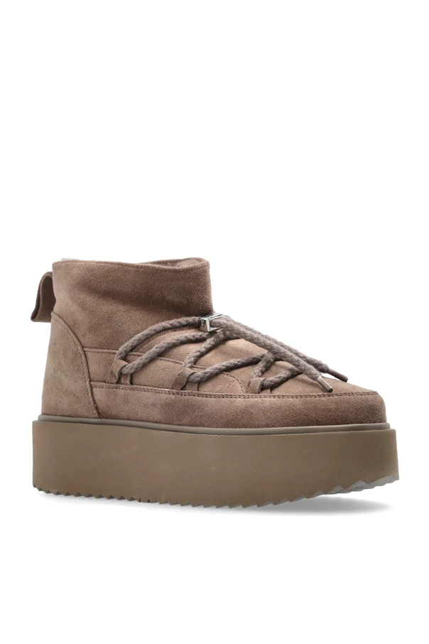 Śniegowce Classic Low Platform marki Inuikii to synonim współczesnej elegancji z nutą ponadczasowego stylu. Zostały stworzone z naturalnego, brązowego zamszu jagnięcego, który w połączeniu z miękkim, wełnianym wnętrzem zapewnia niezrównane poczucie komfortu i ciepła w najchłodniejsze dni.