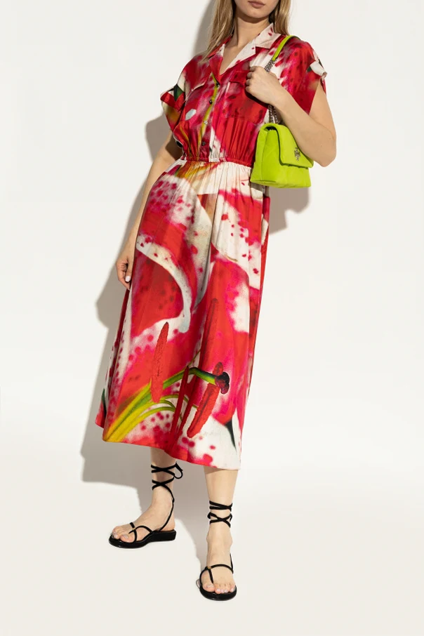Charakterystyczne logo projektanta w formie złotego zdobienia na pasku podkreśla luksusowy charakter produktu, natomiast regulowane, wiązane zapięcie na kostce gwarantuje indywidualny komfort noszenia.