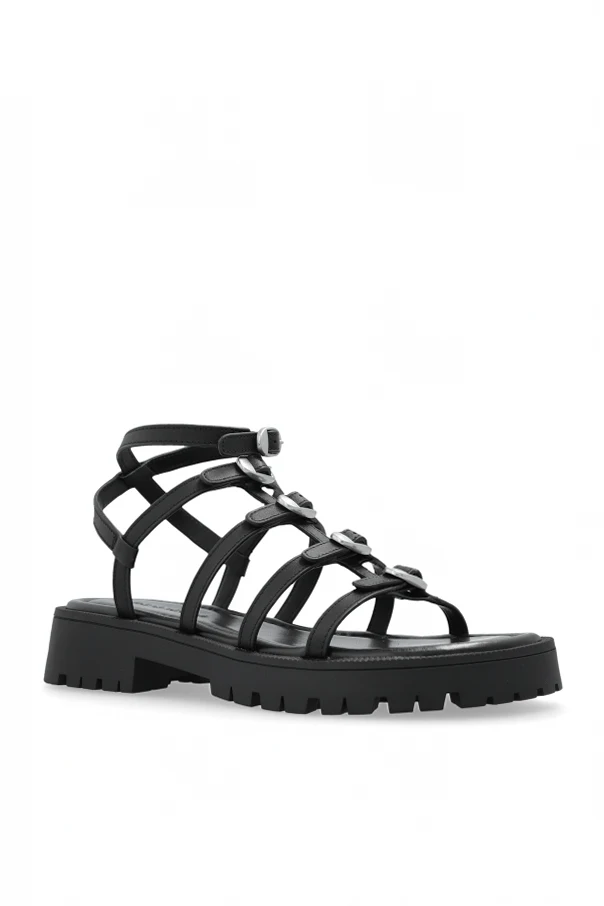 Projekt charakteryzuje się płaską podeszwą z solidnym, żłobionym bieżnikiem, który zapewnia wyjątkową przyczepność i modny wygląd. Wiele cienkich pasków oplata stopę i kostkę, gwarantując wsparcie oraz pewne dopasowanie. Trzy regulowane klamry dodają zarówno komfortu, jak i wizualnej atrakcyjności. Na pięcie subtelnie wytłoczono logo, co podkreśla designerski charakter tego modelu.