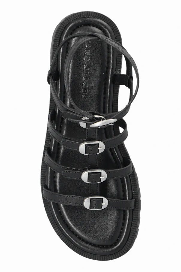 Przedstawiamy Skórzane sandały z ekskluzywnej kolekcji Marc Jacobs, będące esencją luksusu i wyrafinowanego stylu. Te czarne sandały, wykonane z najwyższej jakości skóry, stanowią doskonałą harmonię pomiędzy elegancją a funkcjonalnością.