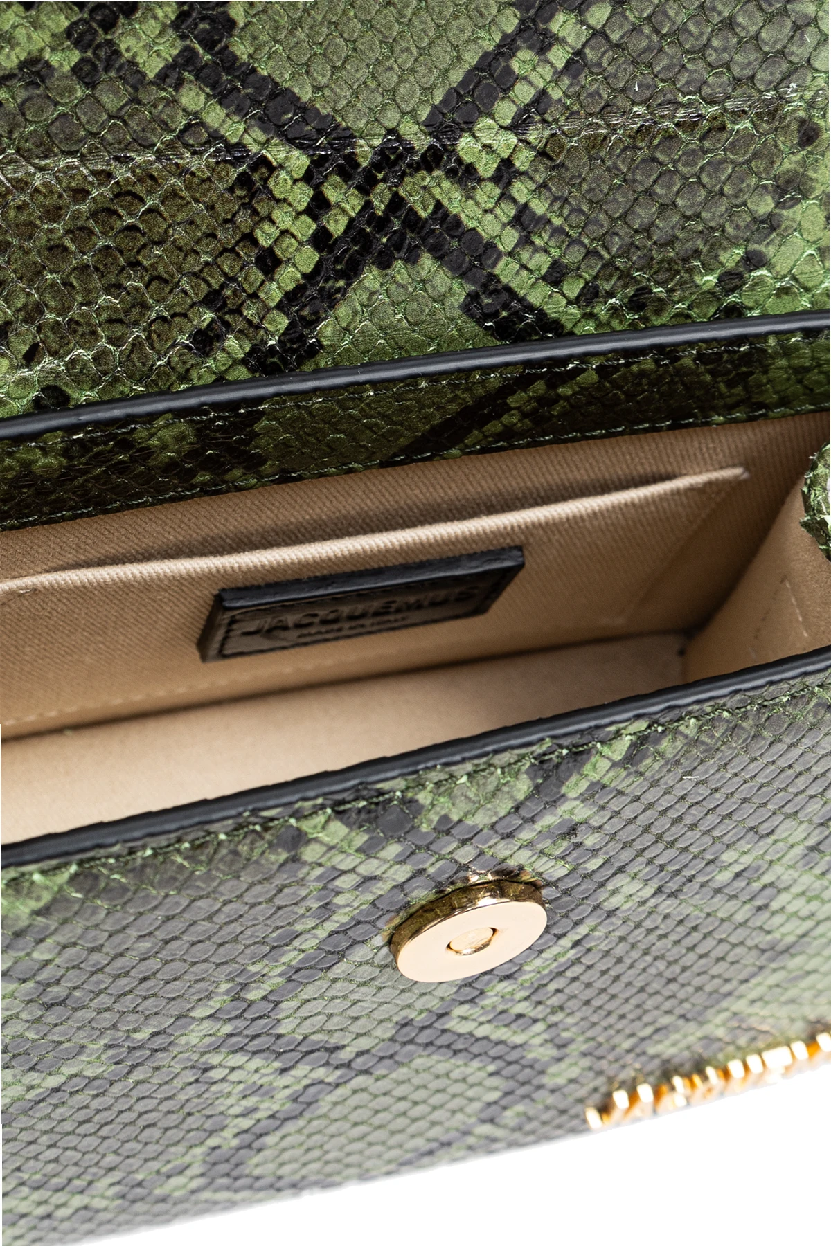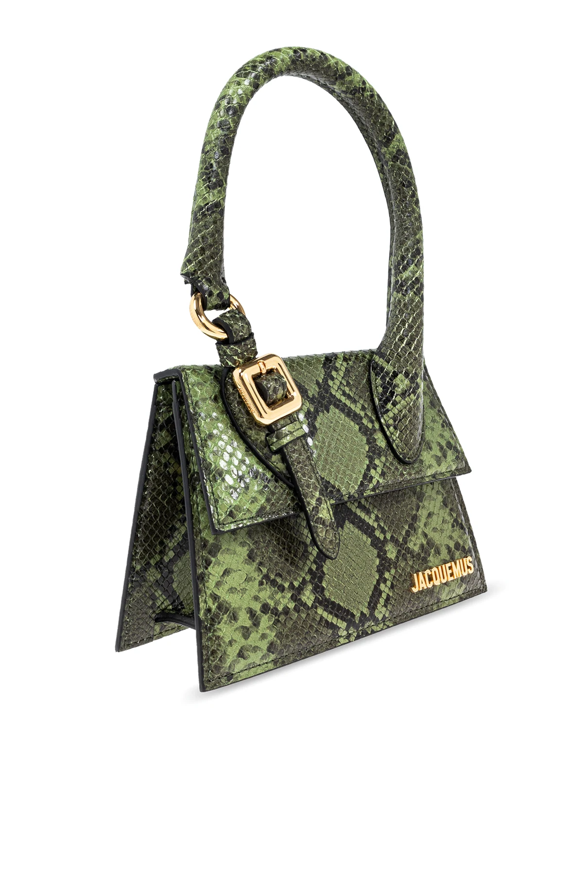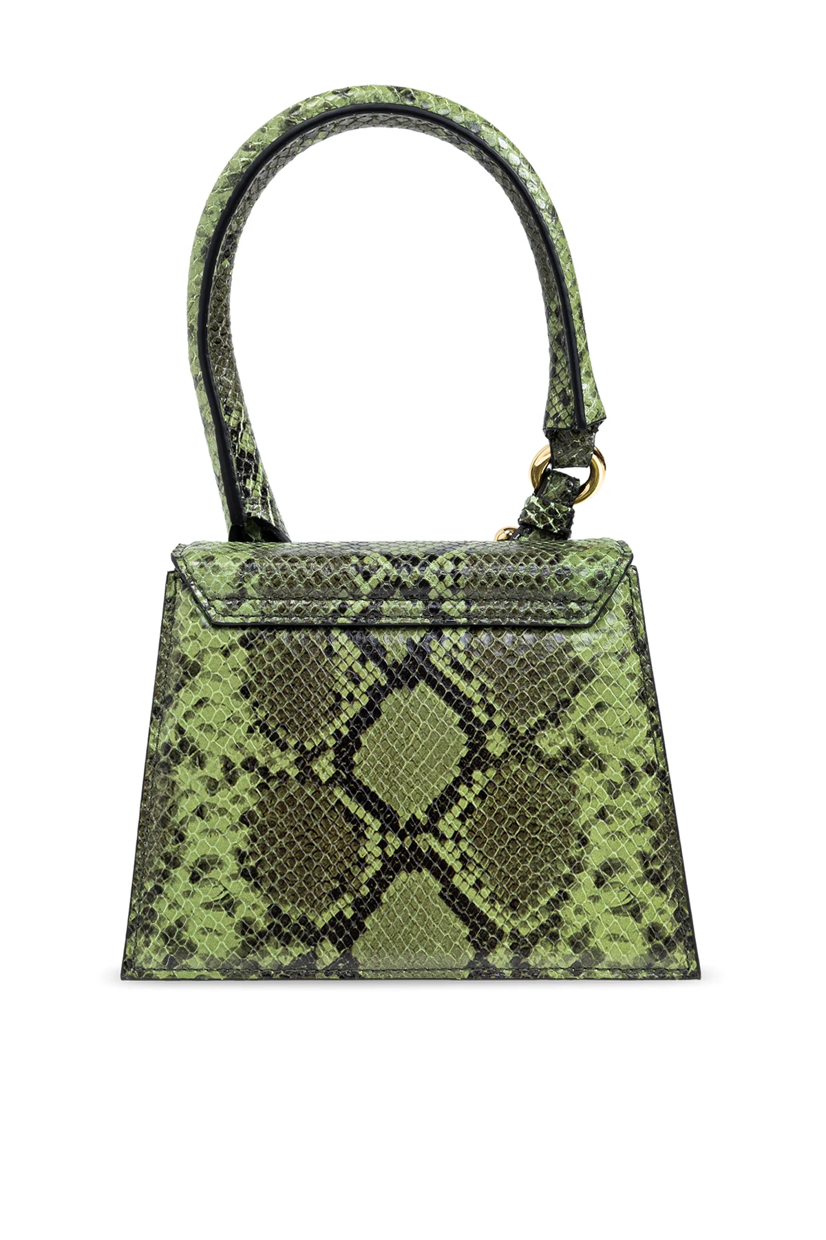Jednym z najbardziej elastycznych elementów jest odpinany, regulowany pasek, również ozdobiony wzorem wężowej skóry, z złotymi akcentami metalowymi, w tym elegancko wygrawerowaną klamrą z logo Jacquemus. Pozwala on na dostosowanie sposobu noszenia torebki do indywidualnych preferencji, czyniąc ją idealnym wyborem zarówno na wyjątkowe okazje, jak i na co dzień.