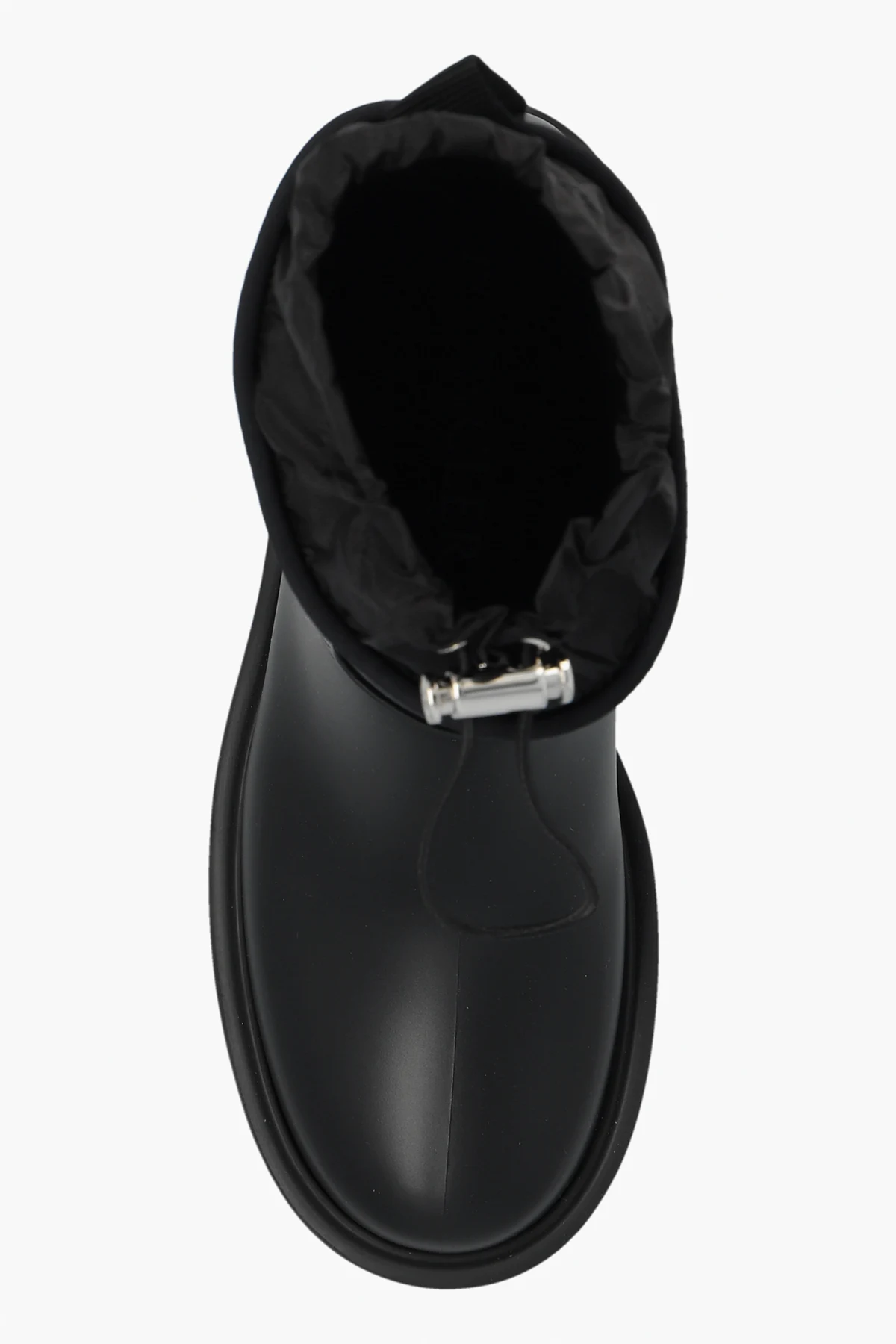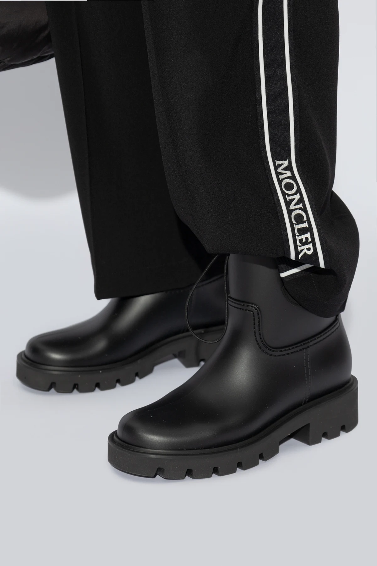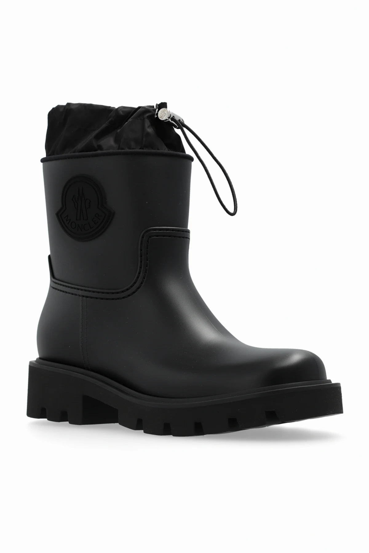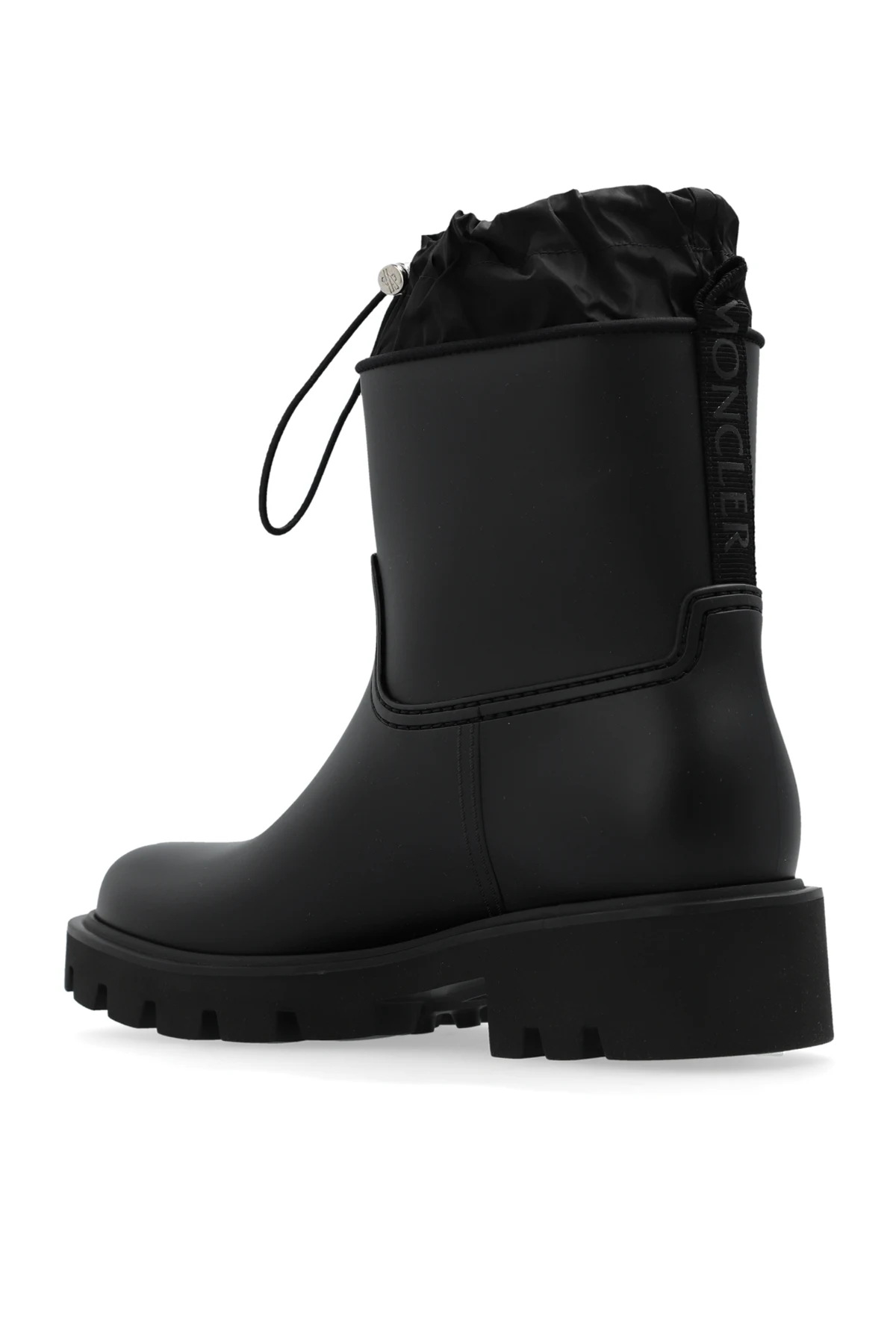Wizualne powiązanie z renomowaną marką Moncler podkreślone jest przez dyskretnie umieszczone, wypukłe logo na zewnętrznej stronie cholewki, dodając tym samym kaloszom ekskluzywnego charakteru.