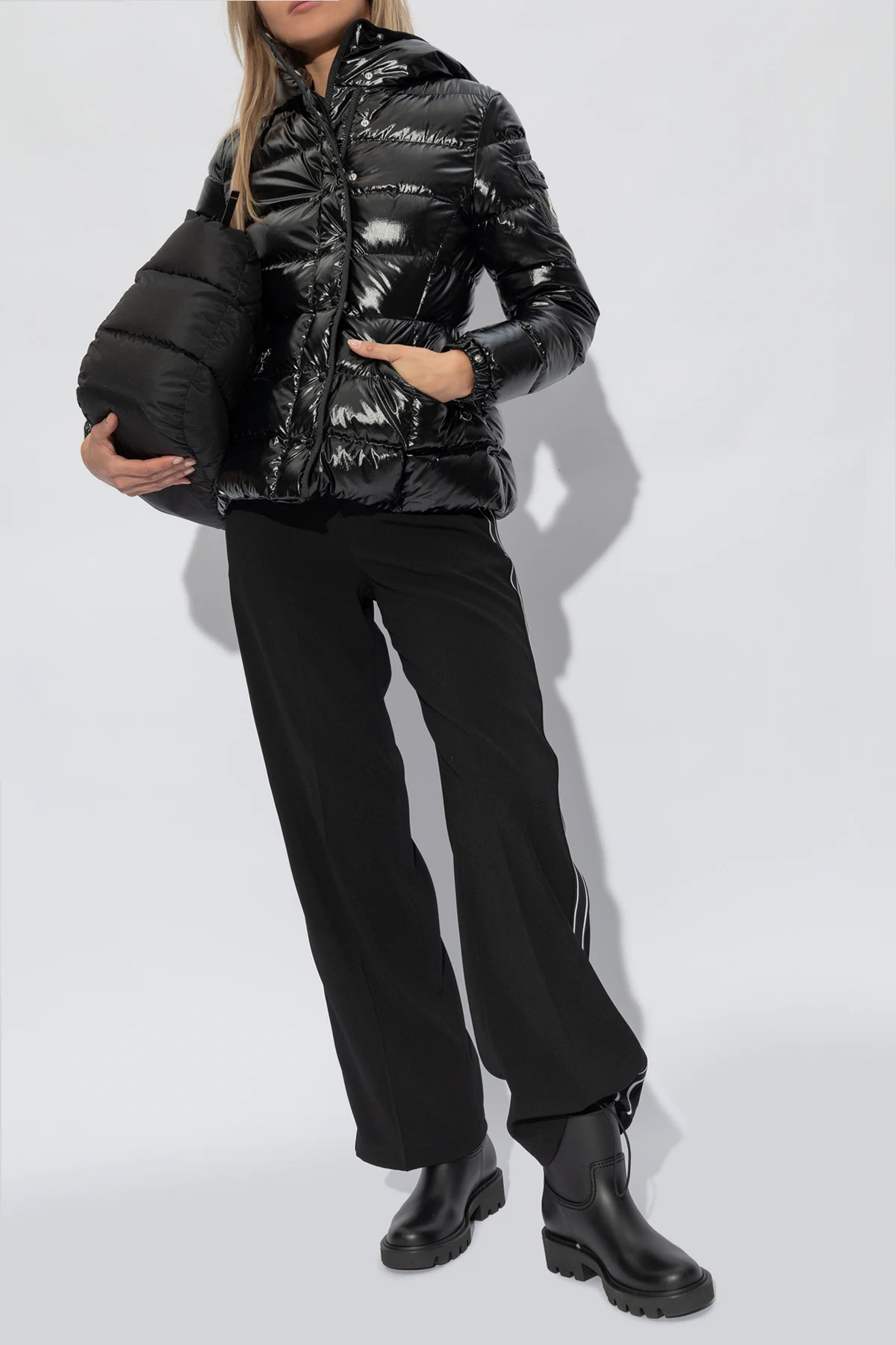 Wyraźne, ale dyskretne logo Moncler, podkreślające ekskluzywność produktu.