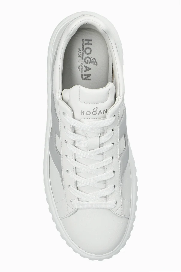 Charakterystyczne logo w formie litery "H" zdobi boki butów, a napis "HOGAN" na języku oraz wewnątrz buta podkreśla prestiż marki. Wzór platformy z wyrazistymi żłobieniami dodaje im nowoczesnego charakteru.