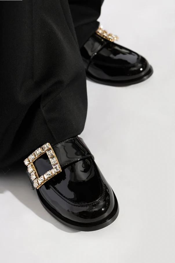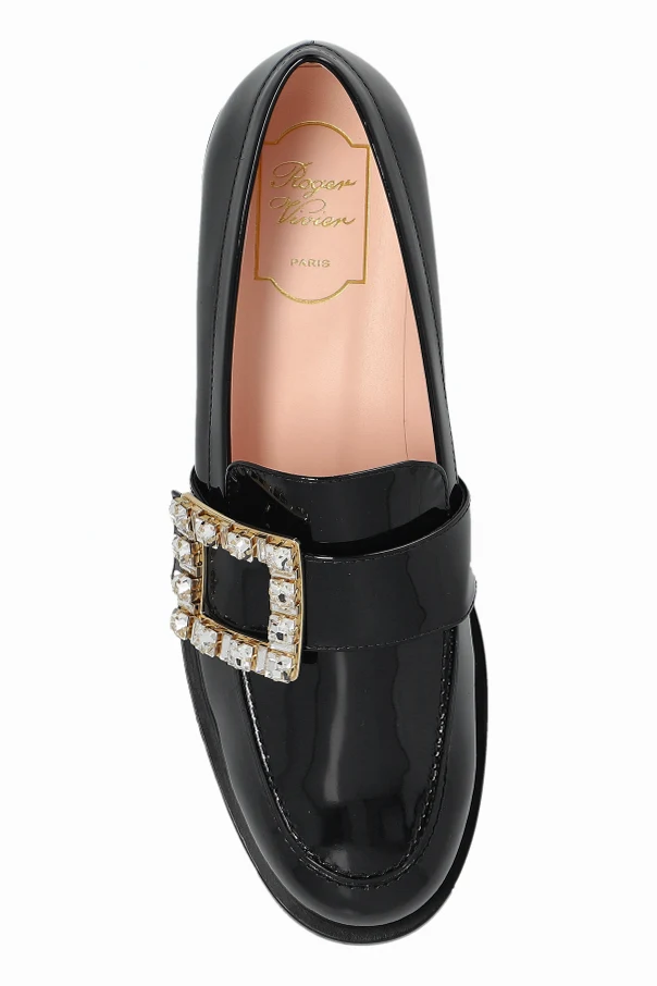 Przedstawiamy buty ‘Tres Vivier’ typu loafers autorstwa renomowanego projektanta Rogera Viviera . Te czarne loafersy z ekskluzywnej kolekcji wyróżniają się klasycznym fasonem z zaokrąglonym noskiem, który emanuje elegancją i wysublimowanym stylem.