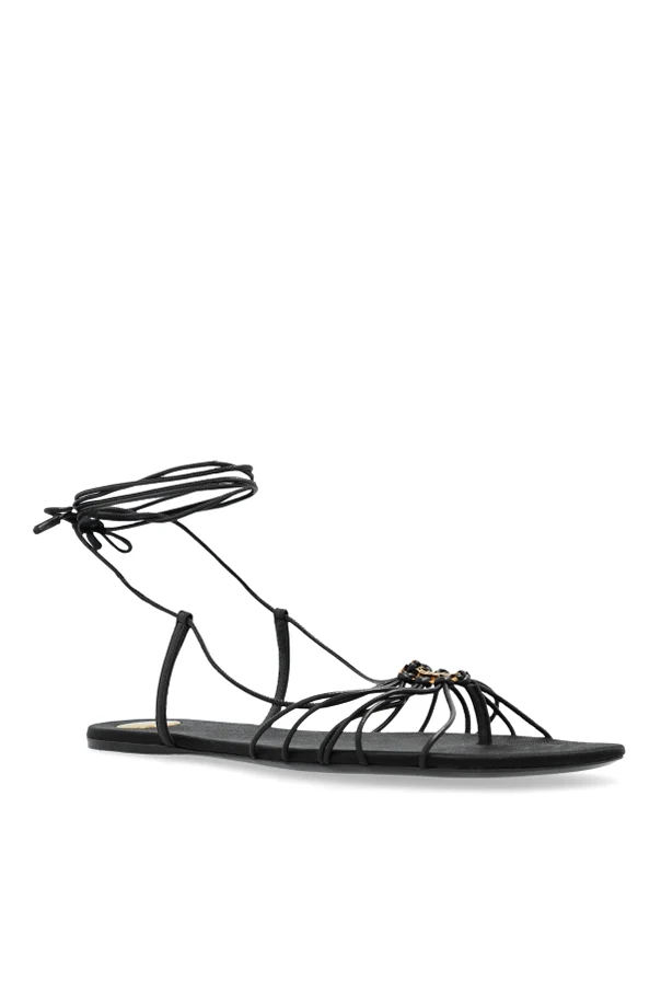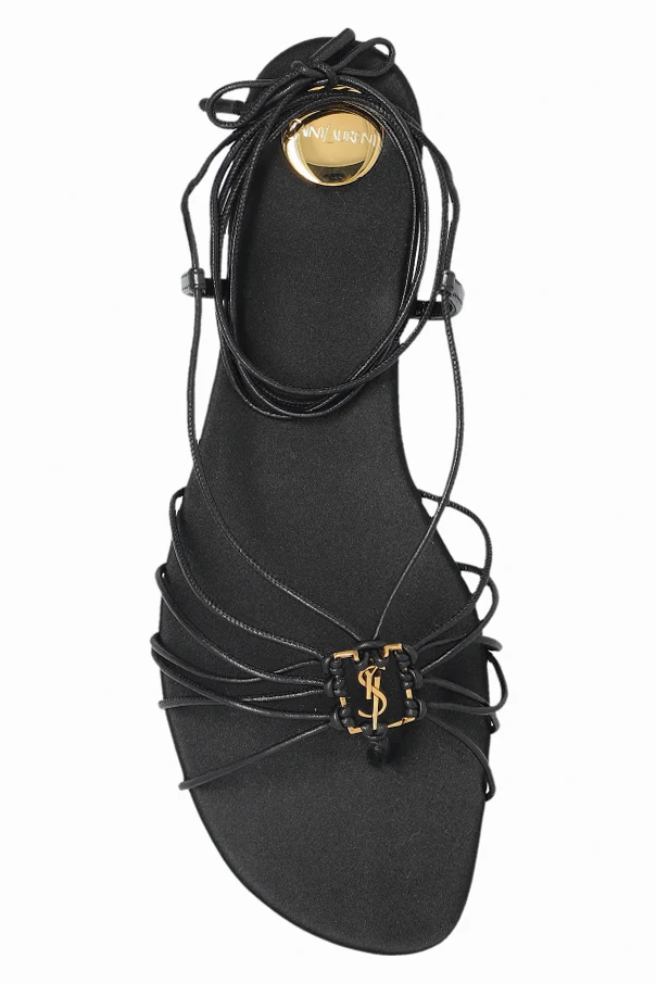 Prezentujemy sandały Babylone z ekskluzywnej kolekcji domu mody Saint Laurent . Ten wyjątkowy model łączy w sobie elegancję z nowoczesnym designem. Wykonane z najwyższej jakości skóry, sandały charakteryzują się płaską podeszwą oraz delikatnymi, czarnymi paskami, które subtelnie oplatają stopę i kostkę.