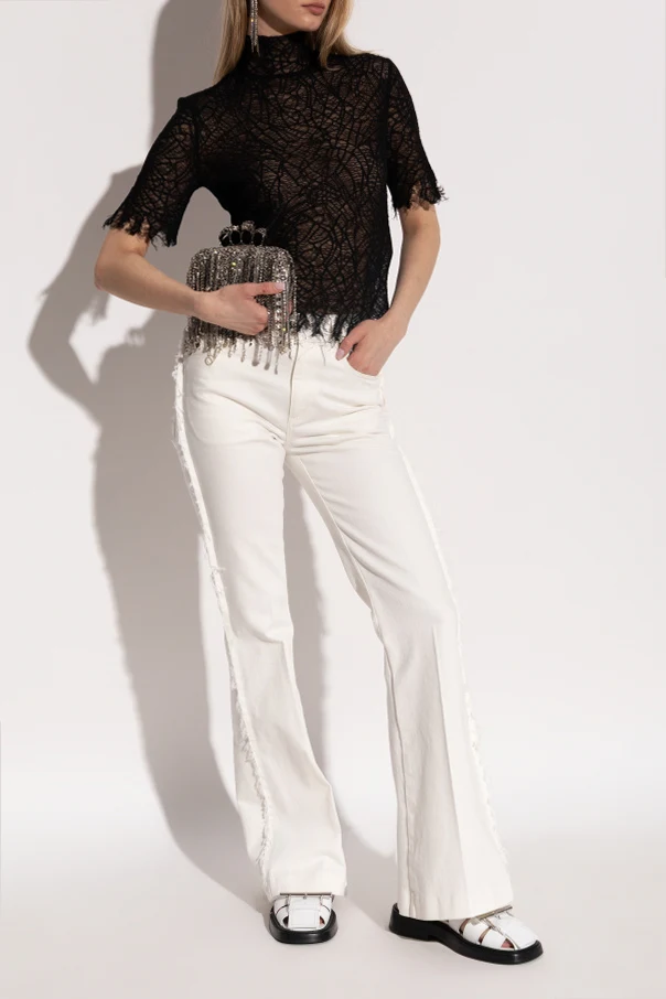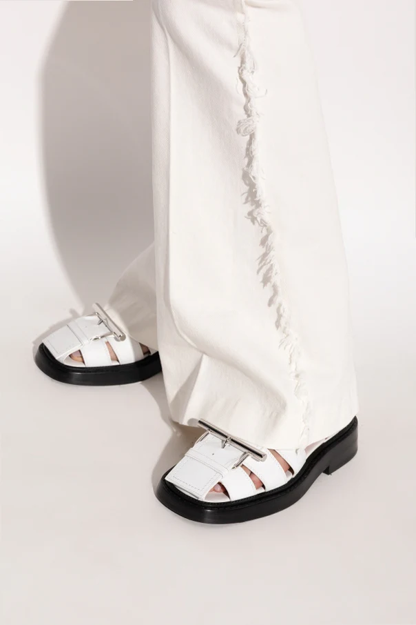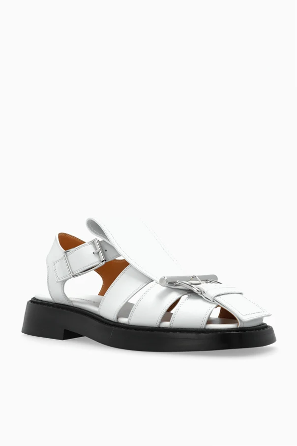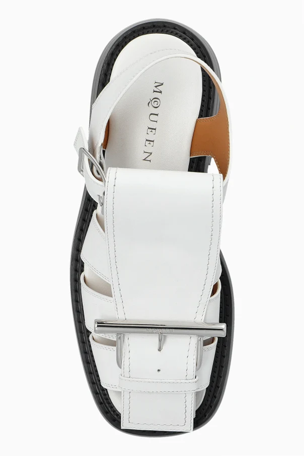 Przedstawiamy skórzane sandały marki Alexander McQueen, które są kwintesencją współczesnego brytyjskiego krawiectwa. Wykonane z najwyższej jakości białej skóry, te sandały łączą elegancję z funkcjonalnością, oferując wyjątkowy styl na sezon letni.