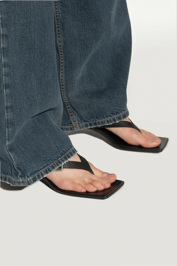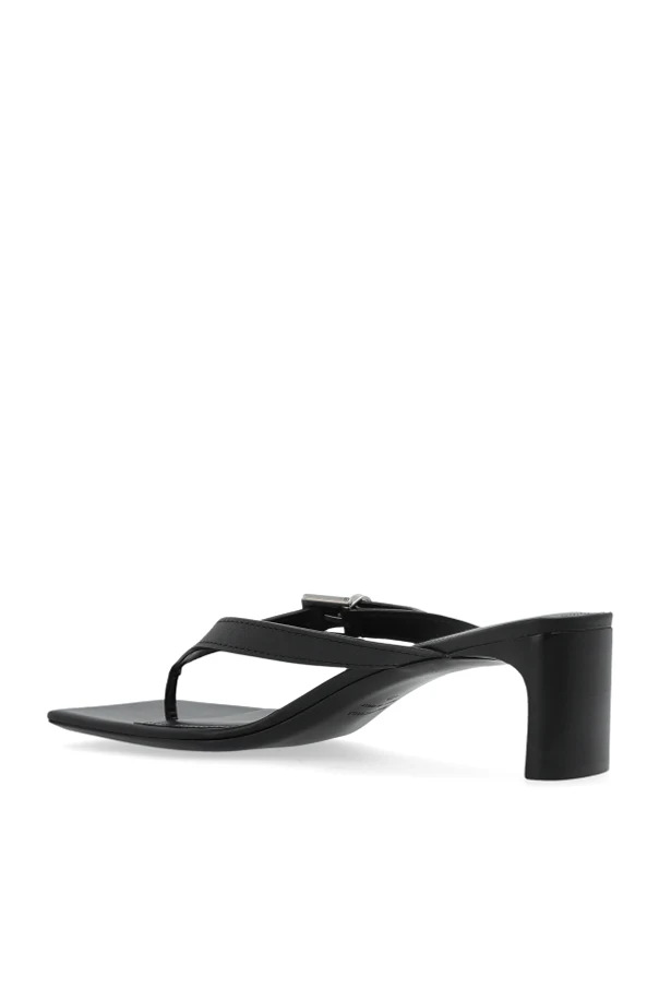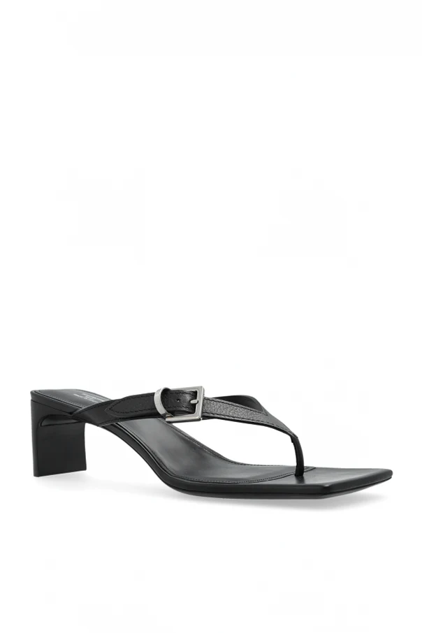 Niezrównane w swojej elegancji i wyrafinowaniu, klapki na obcasie 'Bel Air' od Balenciaga to prawdziwy majstersztyk współczesnego designu. Zdobią je otwarte noski oraz pasek w stylu japonki, które podkreślają nowoczesną estetykę. Kwadratowy nosek dodaje awangardowego akcentu, a średniej wysokości blokowy obcas gwarantuje nie tylko styl, ale i komfort.
