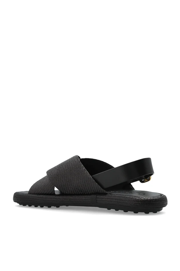 Sandały Gomma od renomowanego projektanta Tod’s to kwintesencja elegancji i funkcjonalności. Te wyjątkowe obuwie zachwyca klasycznymi, krzyżującymi się paskami na przodzie, które subtelnie podkreślają ich wyjątkowy charakter. Dominujący czarny kolor nadaje im uniwersalności, idealnie pasując do różnorodnych stylizacji.