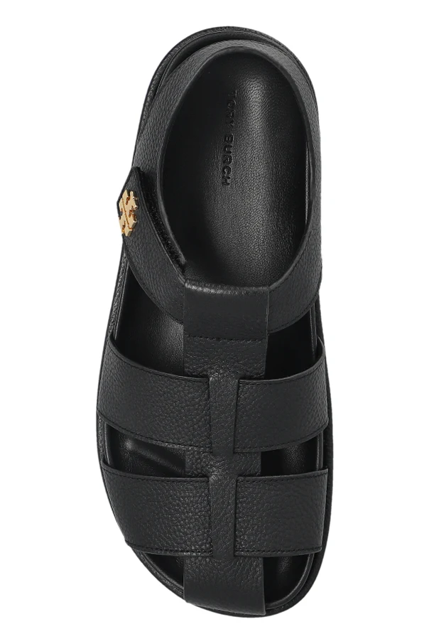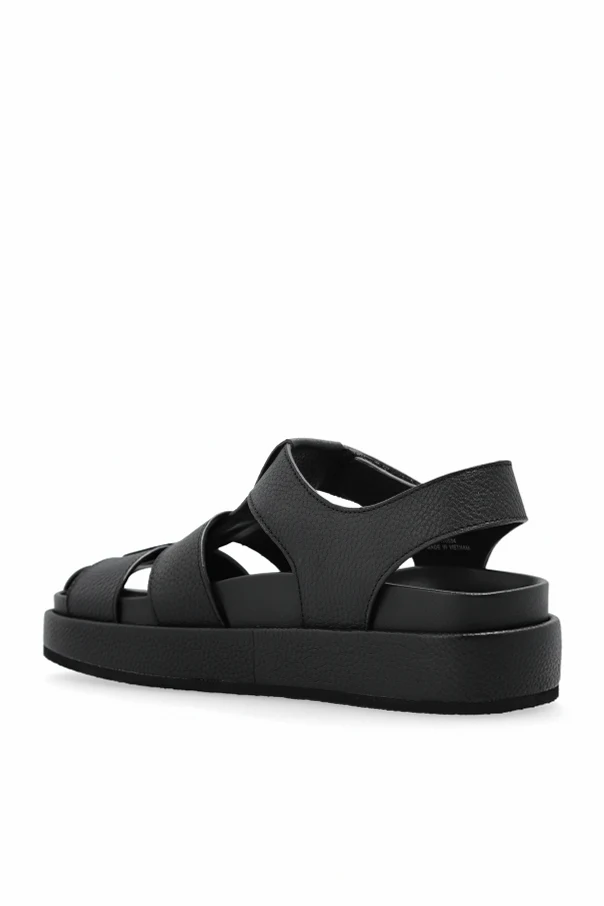 Wykonane z najwyższej jakości czarnej skóry z teksturowanymi paskami, zapewniają głębię i wyrazistość, a metalowe logo projektanta na jednym z pasków dodaje im szlachetnego charakteru. Wnętrze sandałów wyściełane gładką skórą gwarantuje komfort noszenia przez cały dzień.
