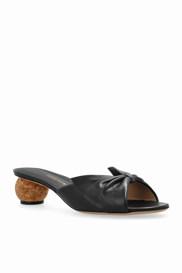 Przedstawiamy Państwu skórzane klapki na obcasie marki FERRAGAMO , stanowiące kulminację luksusu i nowoczesnego wzornictwa. Wykonane z klasycznej, czarnej skóry, oczarowują swoim szlachetnym blaskiem i ponadczasową elegancją. Na uwagę zasługuje dekoracyjny supeł , subtelnie formujący cholewkę, który dodaje eterycznego uroku temu dziełu.