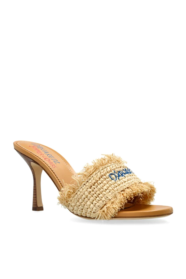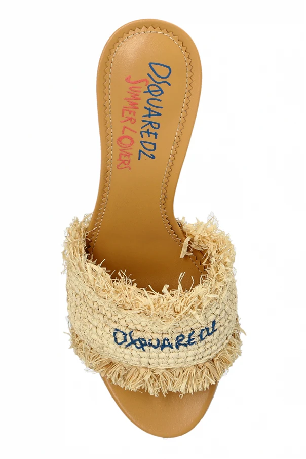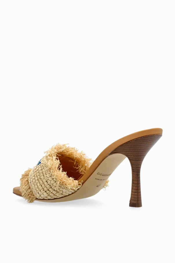 Podaruj sobie odrobinę luksusu z klapkami na obcasie z kolekcji „Summer Lovers” autorstwa Dsquared2, które reprezentują najwyższy poziom modowego kunsztu. Wykonane z naturalnej rafii i skóry, doskonale łączą w sobie trwałość oraz unikalny design, zachwycając swoim smukłym i eleganckim kształtem.