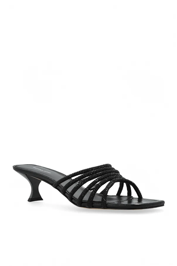 Klapki na obcasie „Haisley” autorstwa Michael Michael Kors to synonim wyrafinowanej elegancji z nutą współczesnego artyzmu. Ten wyjątkowy model zachwyca lekkością formy i niezwykłą dbałością o detale – niskim, profilowanym obcasem typu kitten heel o harmonijnie stożkowym kształcie oraz oryginalnym, kwadratowym nosku.