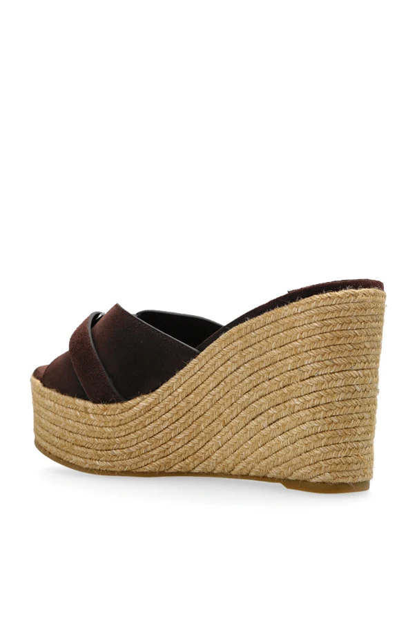 Szeroko otwarty przód (open toe) i charakterystyczne skrzyżowanie pasków zapewniają wygodę i lekkość, a koturna, zmysłowo obłożona plecionką inspirowaną naturalną jutą, wprowadza akcent boho. Luksusowa, skórzana wkładka oraz solidna, lecz wyrafinowana podeszwa z gumy dbają o trwałość i komfort, nawet podczas najbardziej wymagających dni.