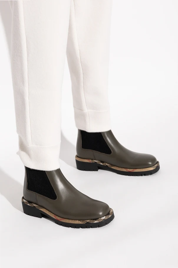 Botki za kostkę marki Burberry to kwintesencja wysublimowanego stylu angielskiej klasyki oraz nowoczesnej prostoty. Wyróżniają się głęboką, zieloną barwą oraz klasycznym fasonem sztybletów z subtelnie zaokrąglonym noskiem i smukłym profilem, który doskonale podkreśla charakter produktu.