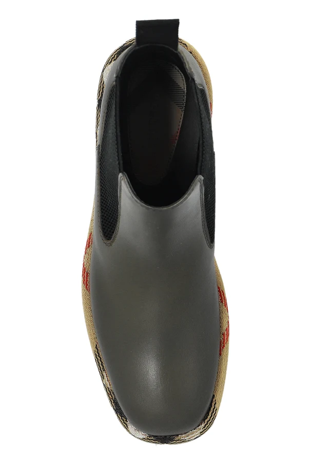 Wykonane w całości z wysokogatunkowej skóry o delikatnie matowym wykończeniu gwarantują wytworność i trwałość . Elastyczne czarne wstawki po bokach pozwalają na wygodne zakładanie oraz dopasowanie do każdej sylwetki. Gruba, płaska podeszwa z gumy, wyposażona w solidny bieżnik, zapewnia niezrównaną stabilność, a ozdobny beżowy pasek z wyrafinowanym motywem i czerwonymi akcentami subtelnie nawiązuje do wyrafinowania marki Burberry. Z tyłu umieszczono charakterystyczną, czarną pętelkę, która podkreśla ponadczasową estetykę tego modelu.