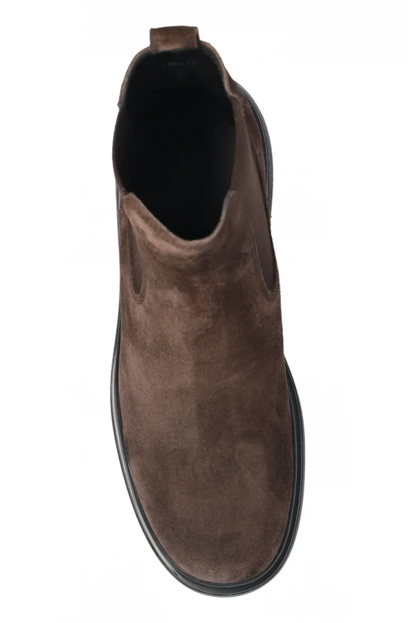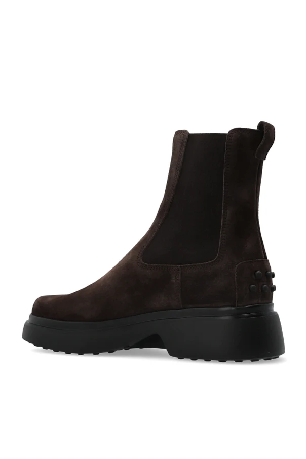 Odkryj wyrafinowaną elegancję w postaci zamszowych sztybletów marki Tod’s. Klasyczny fason tego obuwia – sięgający za kostkę, z zaokrąglonym noskiem oraz solidną, lekko militarną podeszwą – zachwyca ponadczasową linią, wpisującą się w kanony wykwintnej mody. Wierzchnia warstwa została wykonana z niezwykle szlachetnego zamszu o matowej, wyrazistej fakturze. Minimalistyczny, gładki wzór bez ozdób podkreśla dystyngowany charakter produktu.