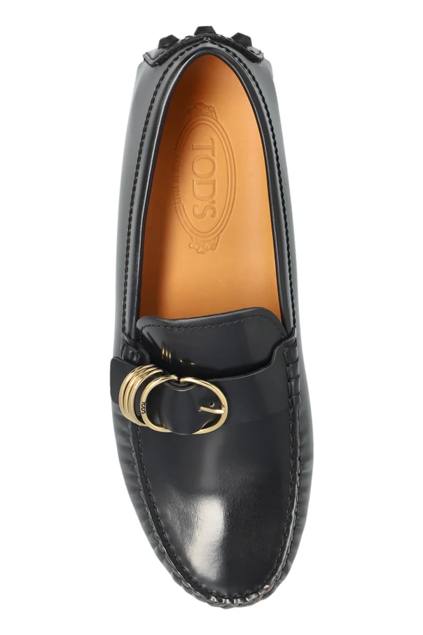Szczególnego uroku dodaje butom złota sprzączka w formie koła oraz zestaw trzech metalowych obręczy – detal będący wyrazem luksusu i rozpoznawalnym akcentem kolekcji. Skórzane, miękkie wnętrze w koniakowym tonie ozdobiono tłoczonym logo Tod’s , a podeszwa z gumowymi wypustkami „pelle di polpo” gwarantuje doskonałą przyczepność i komfort każdego kroku, również chroniąc skórę na tyle obcasa.