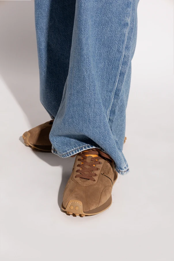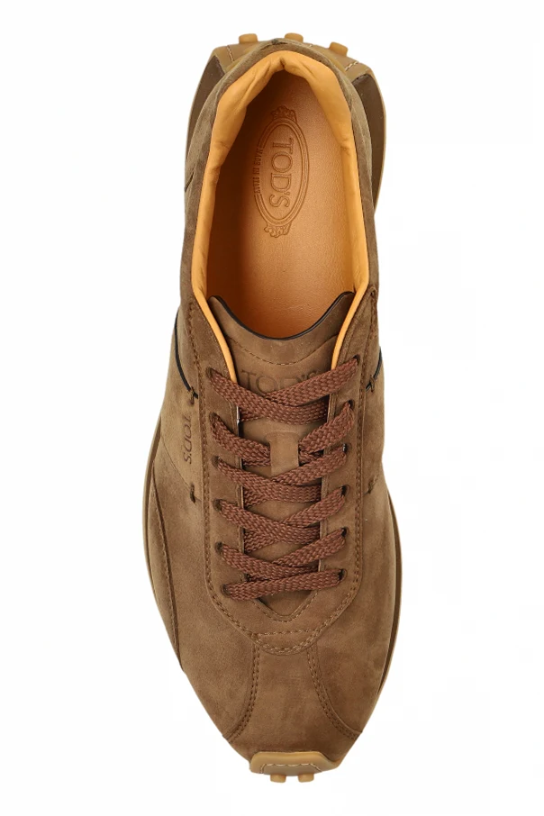 Zamszowe buty sportowe z logo marki Tod’s to synonim wyrafinowanego stylu, w którym sportowa funkcjonalność harmonizuje z subtelną elegancją. Opływowa sylwetka sneakersów typu low top została stworzona z najwyższej jakości zamszu w ciepłym odcieniu brązu, a staranne przeszycia podkreślają segmentację cholewki, nadając całości nowoczesny i dopracowany charakter.