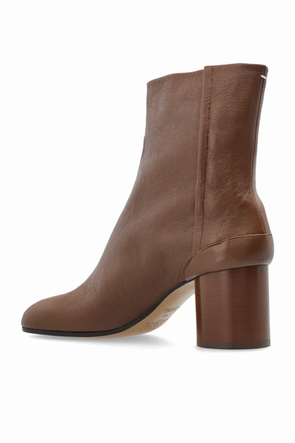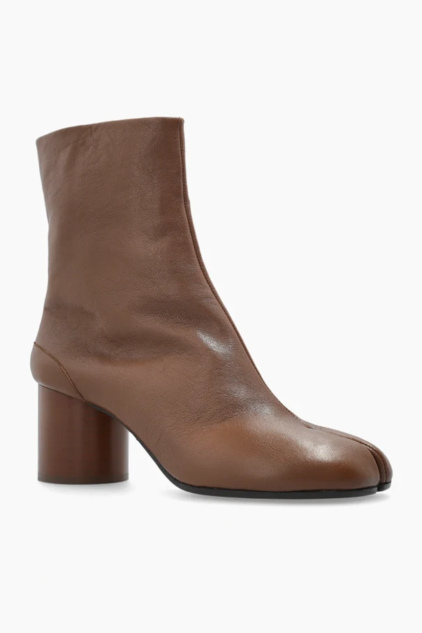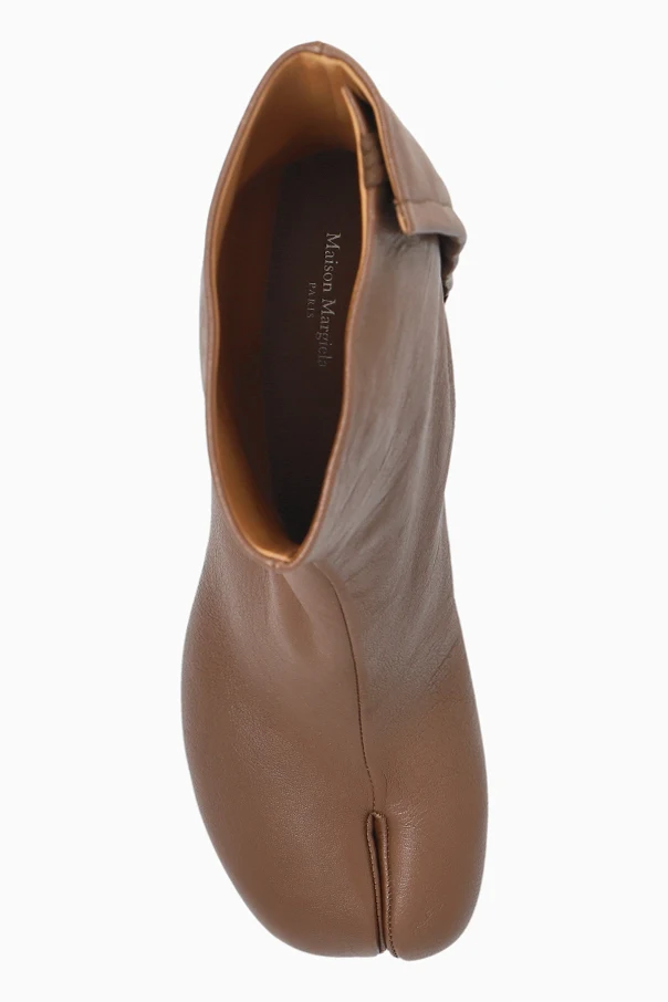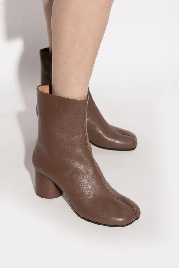 Skórzane botki marki Maison Margiela to kwintesencja wyszukanego minimalizmu oraz współczesnej elegancji. Wykonane z najwyższej jakości, miękkiej skóry naturalnej o subtelnym, satynowym połysku, zachwycają jednolitą brązową barwą oraz niezwykle komfortową konstrukcją. Dopracowana sylwetka z szerokim, zaokrąglonym czubkiem oraz charakterystycznym, pionowym rozcięciem na froncie inspirowanym stylem „tabi” stanowi wyraziste nawiązanie do japońskiej tradycji. Stabilny, szeroki obcas o cylindrycznym kształcie perfekcyjnie komponuje się z minimalistycznym wzornictwem, oferując jednocześnie wygodę oraz niebanalny akcent wizualny. Wyjątkowość tych botków podkreślają również skórzane, starannie wykończone wnętrze i podeszwa.