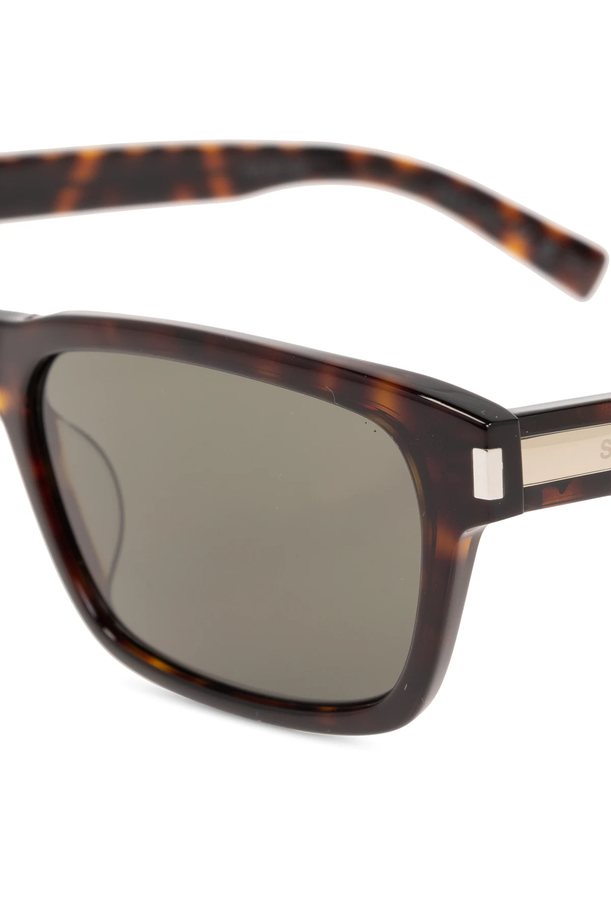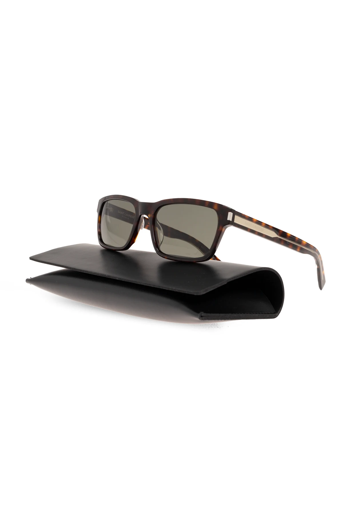 Wyrafinowane detale, w tym zauszniki ozdobione logo Saint Laurent.