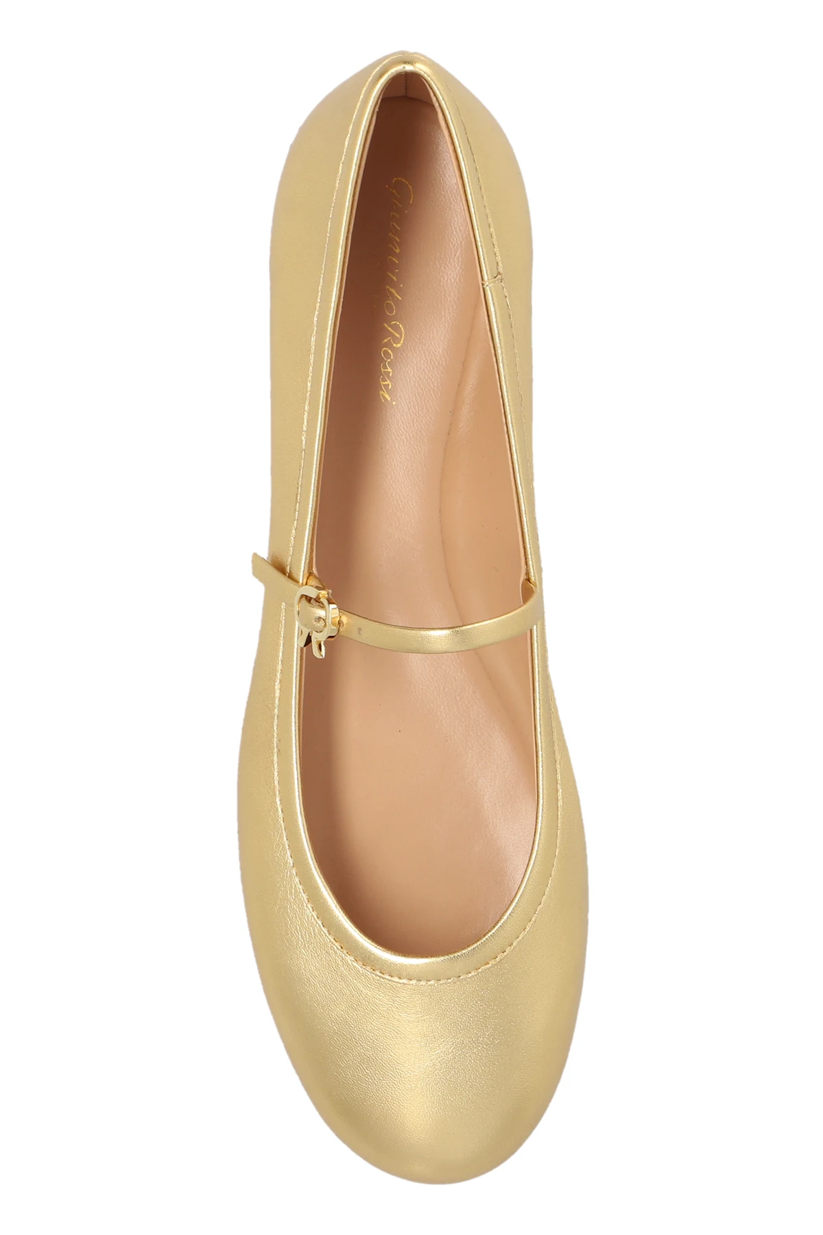 Wyróżniają się klasycznym kształtem o zaokrąglonym nosku oraz niskim profilu, typowym dla balerin. Wykonane z błyszczącego materiału w kolorze złotym, doskonale komponują się z różnorodnymi stylizacjami. Wnętrze buta, wyściełane gładką, beżową skórą, gwarantuje najwyższy komfort noszenia.