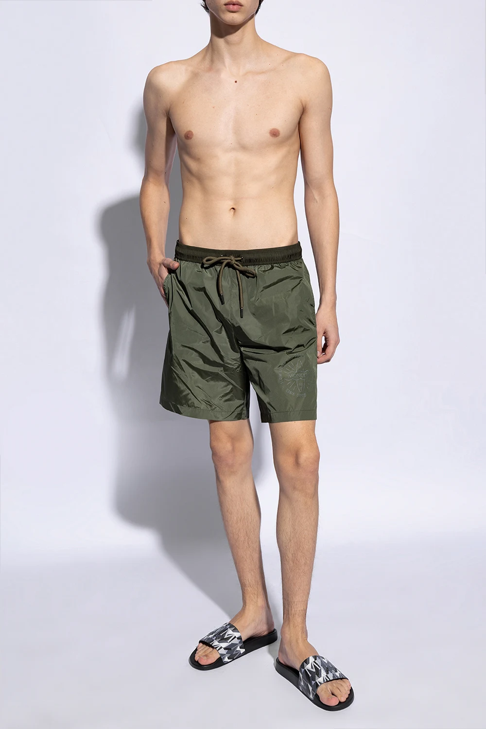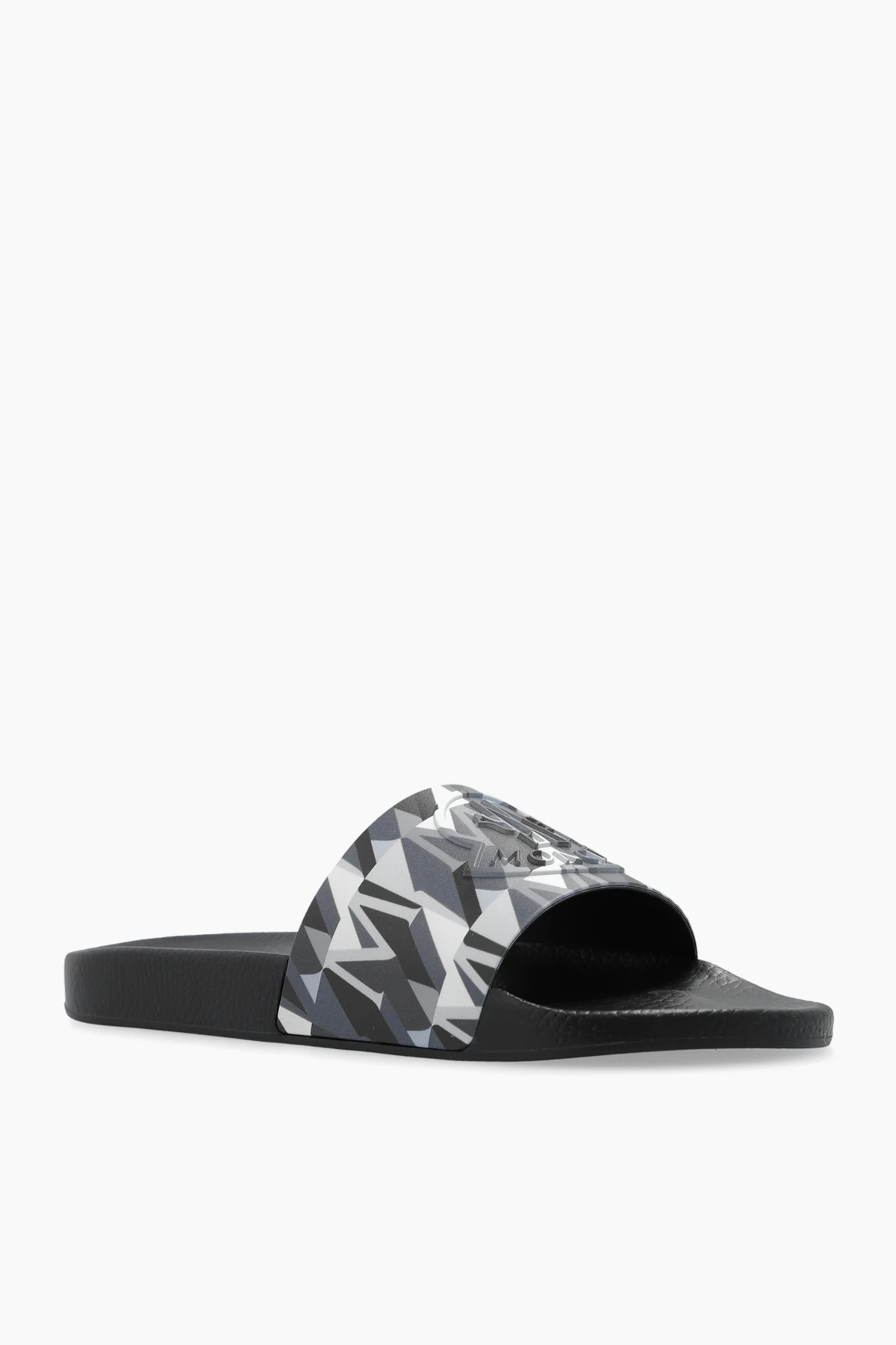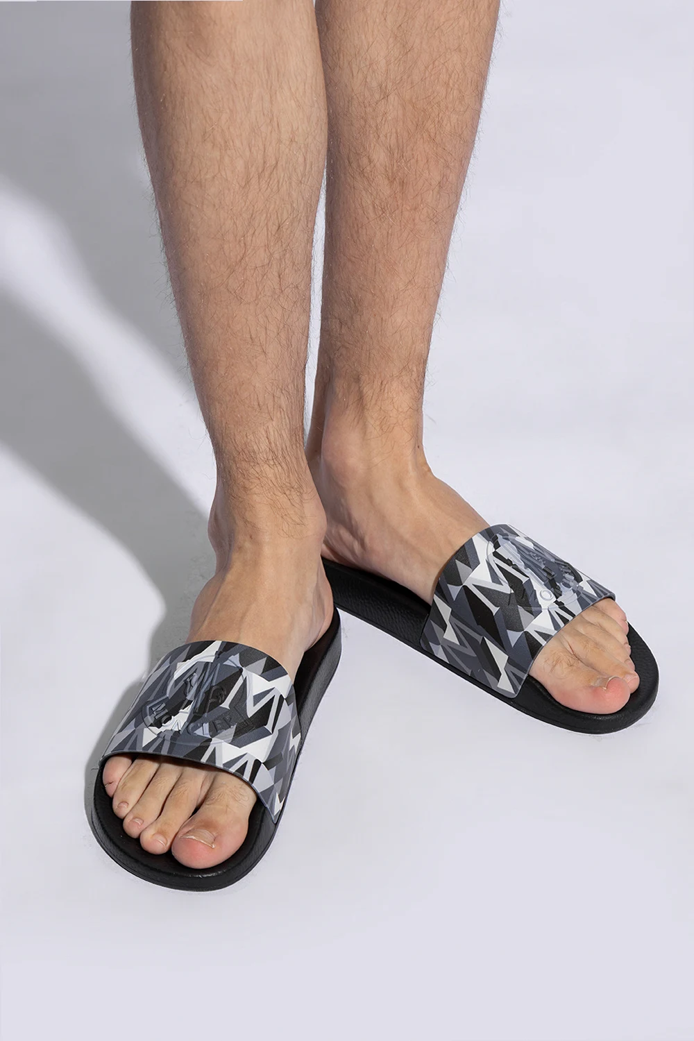Prezentujemy Państwu ekstrawaganckie gumowe klapki ‘Basile’ od renomowanej marki Moncler , które łączą w sobie luksusowy design z niezrównaną wygodą użytkowania. Charakterystyczna, czarna barwa oraz unikatowy pas zdobiący środkową część obuwia, wzbogacony o geometryczne wzory w odcieniach szarości, bieli i czerni, nadają temu modelowi wyjątkowego charakteru.