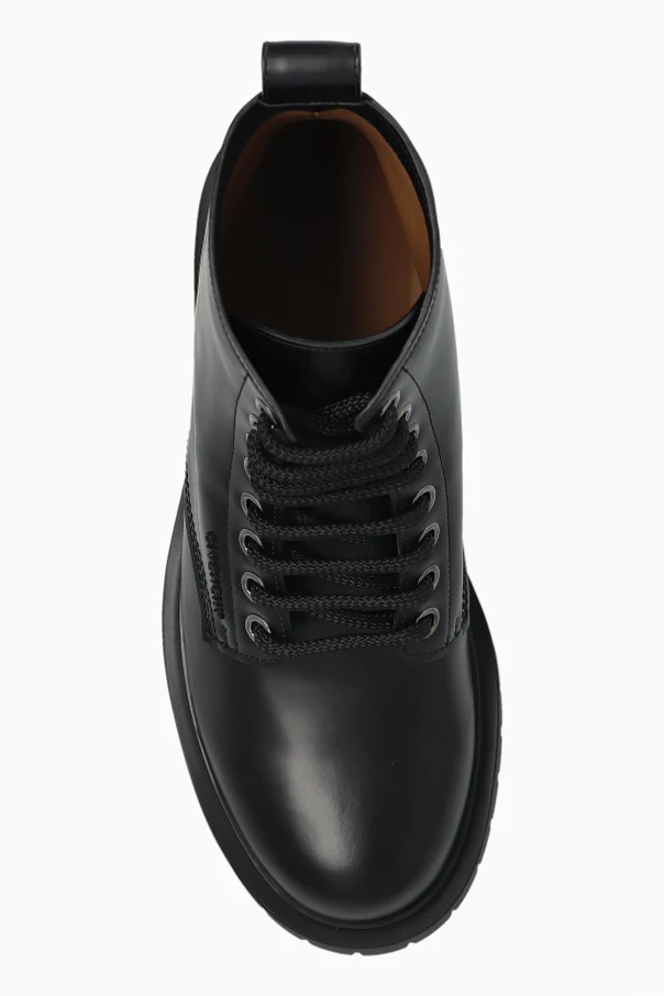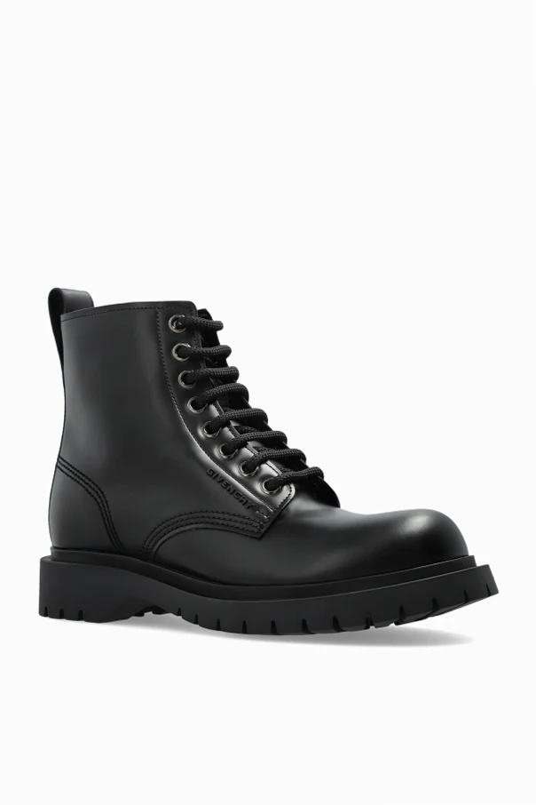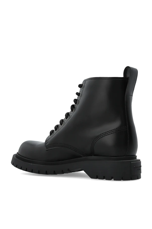 Botki wykonano z wysokogatunkowej, gładkiej skóry naturalnej o delikatnym połysku, charakterystycznym dla ekskluzywnej galanterii. Minimalistyczny, jednolity czarny wzór podkreśla niezrównaną klasę oraz uniwersalność obuwia. Lekko masywna konstrukcja z solidną, profilowaną podeszwą na lekkim protektorze gwarantuje stabilność w każdych warunkach. Dziewięciootworowe sznurowanie z metalowymi oczkami, delikatne logo tłoczone przy cholewce oraz praktyczna pętelka z tyłu ukazują dbałość o detale, tak charakterystyczną dla wyjątkowych projektów Givenchy.