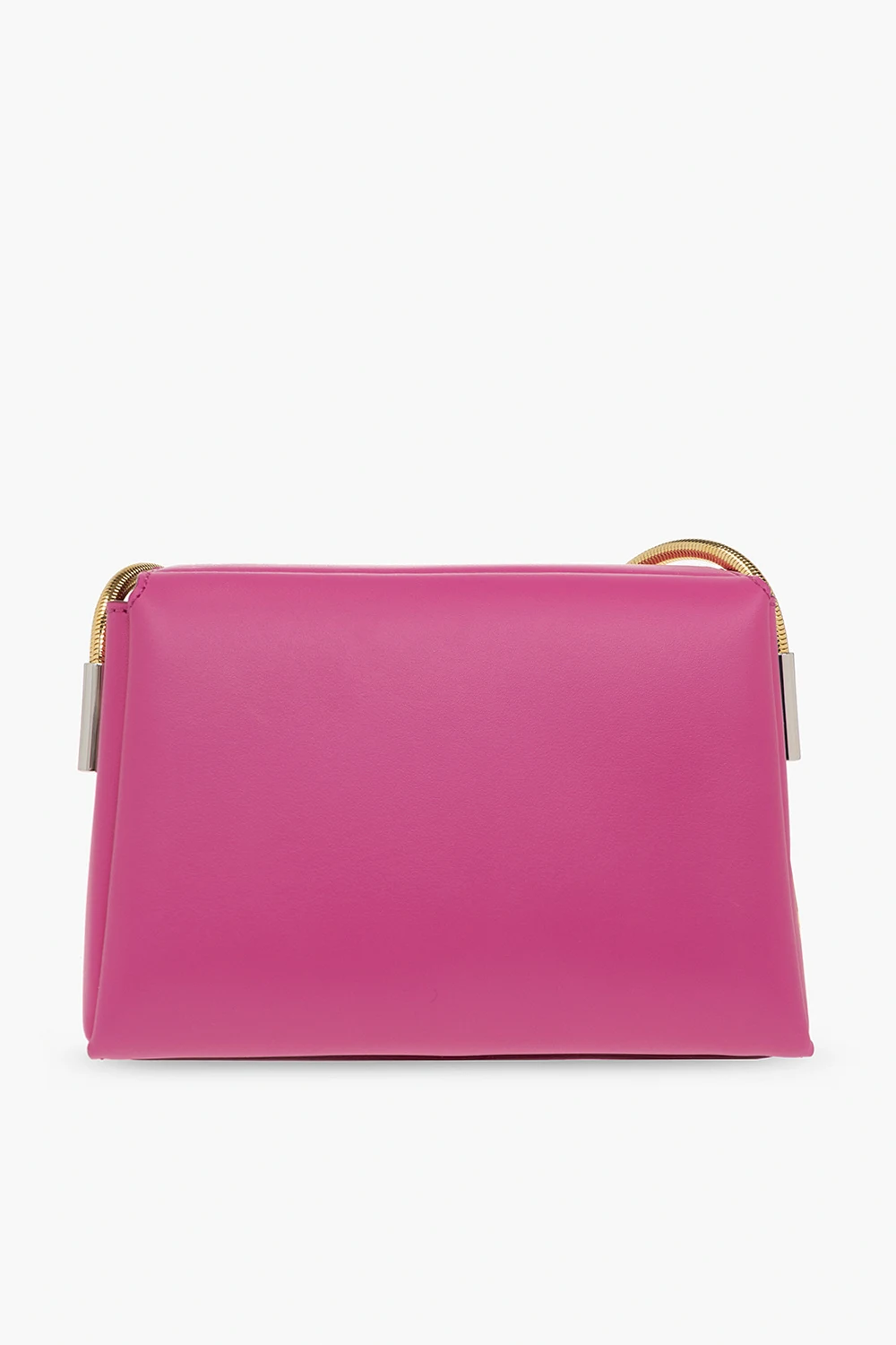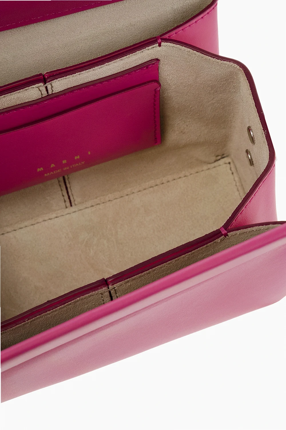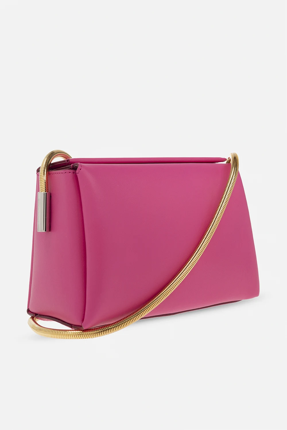Różowa torba na ramię, model 'Toggle' Marni. Wykonana ze skóry cielęcej. Magnetyczny zatrzask. Ozdobiona nadrukiem z logo w kolorze złotym. Łańcuch na ramię w kolorze złotym. Wewnątrz trzy komory oraz dwie wsuwane kieszenie.