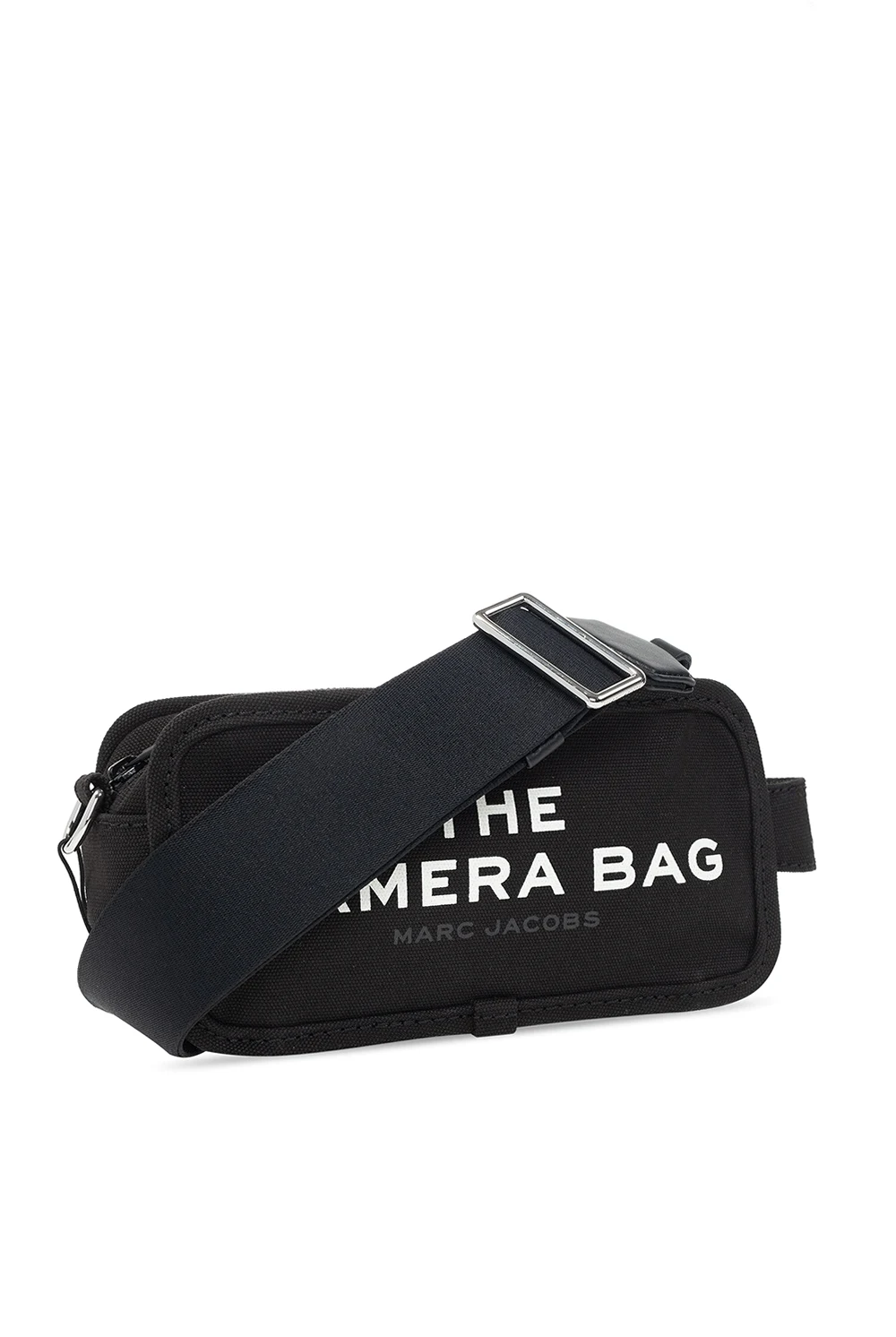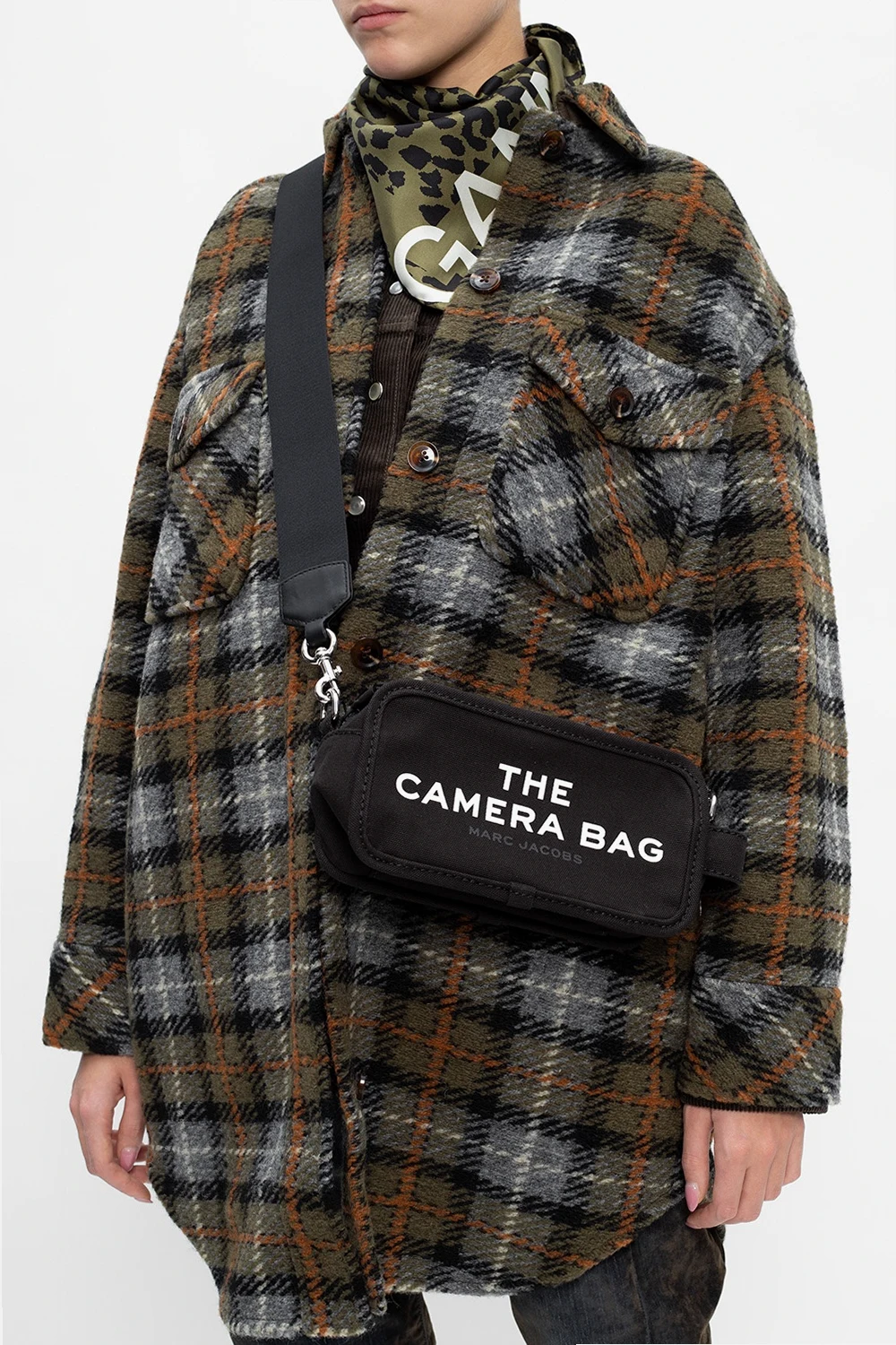 Czarna torba na ramię, model 'The Camera Bag' Marc Jacobs (The). Zamykana na zamek. Ozdobiona nadrukowanym logo w kolorze białym oraz naszytą aplikacją. Odpinany pasek na ramię z możliwością regulacji długości. Wewnątrz komora.
