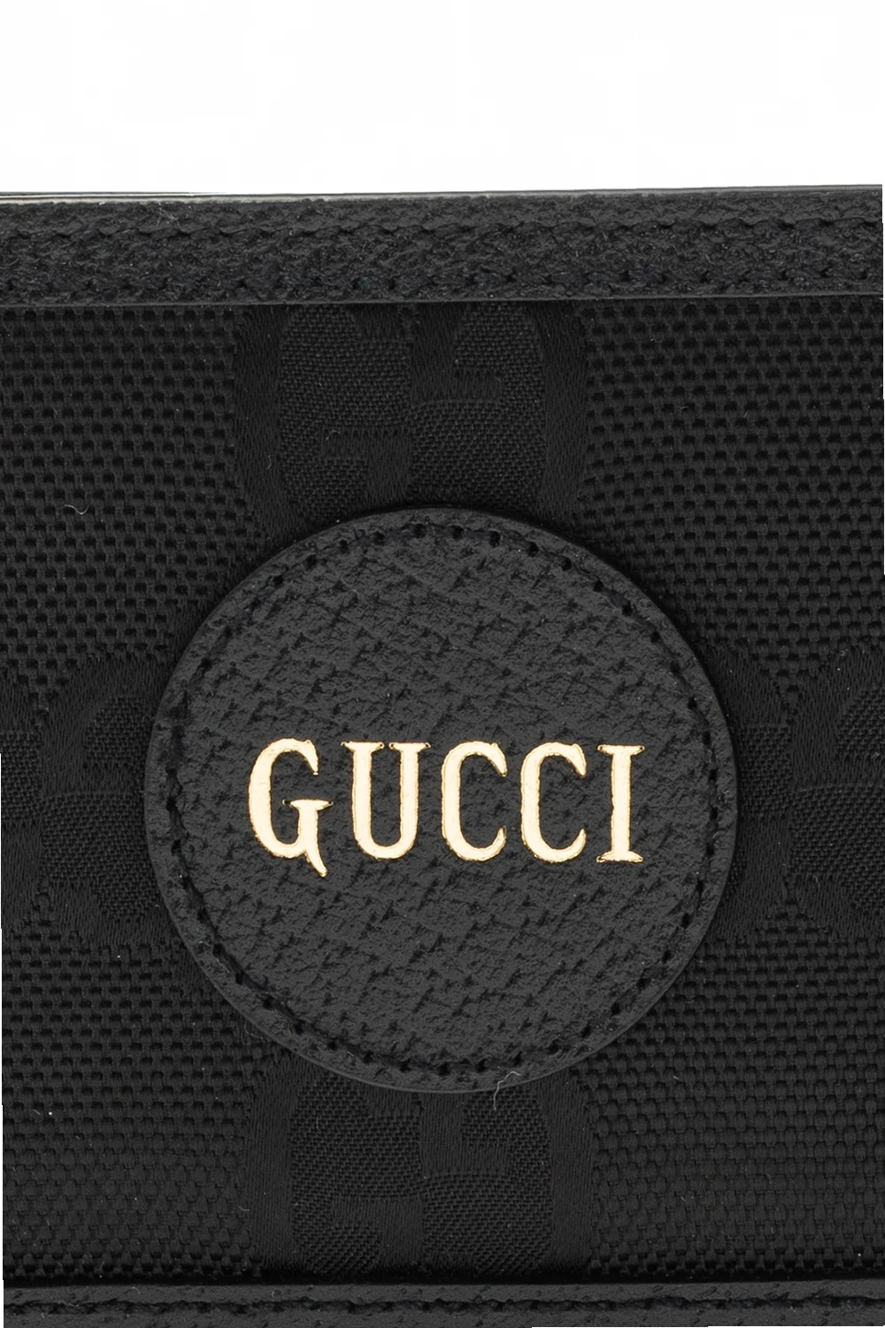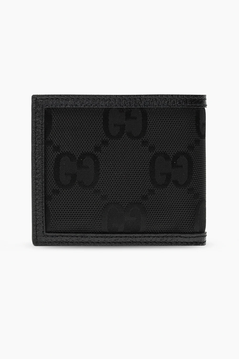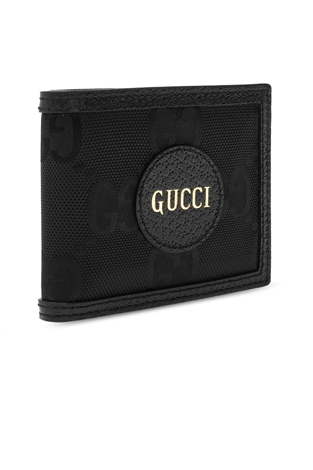 Czarny portfel Gucci. Wykonany z materiałów pochodzących z recyklingu. Ozdobiony wzorem z motywem ‘GG’ wykonanym z materiału ECONYL®. Dekoracyjne, nadrukowane logo w kolorze złotym. Wewnątrz dwie kieszenie na banknoty, dwie wsuwane kieszenie oraz osiem miejsc na karty. Skórzane wykończenie w kolorze czarnym.