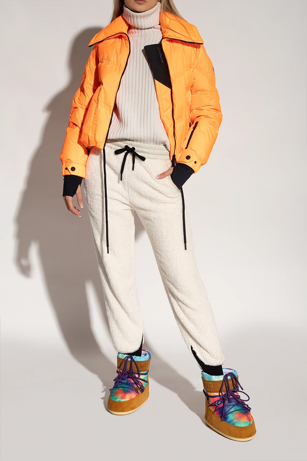 Kolorowe, sznurowane śniegowce Palm Angels x Moon Boot. Wykonane z materiału oraz skóry. Ozdobione wzorem z motywem ‘tie-dye’ oraz wytłoczonym logo. Beżowo-kremowa, gumowa podeszwa.