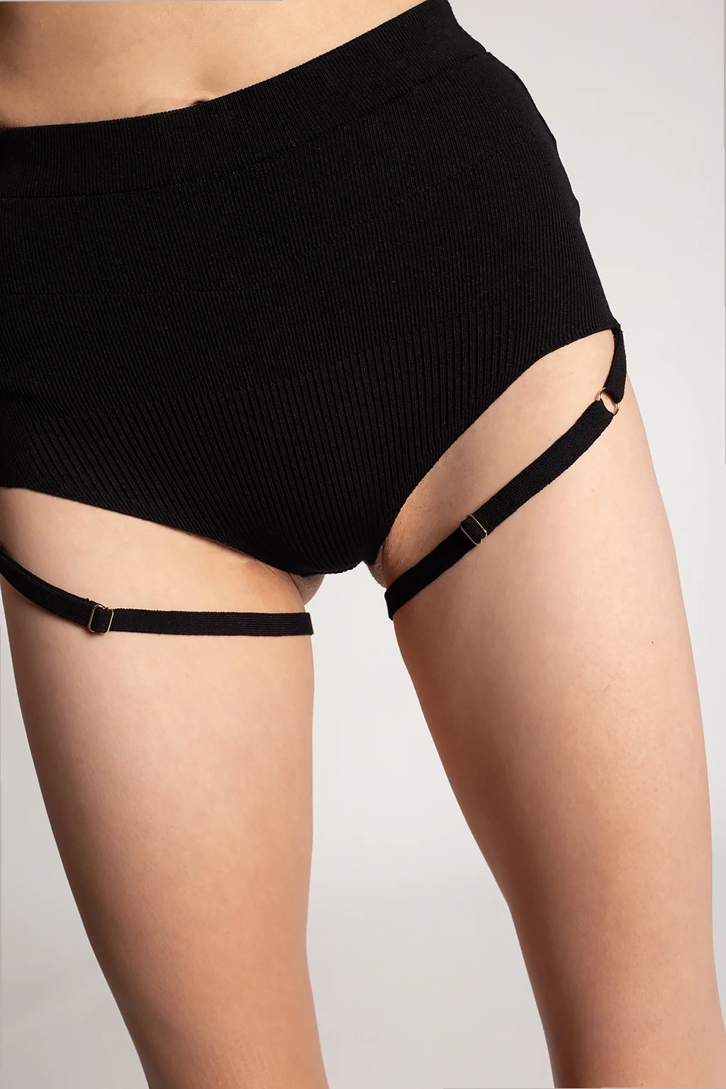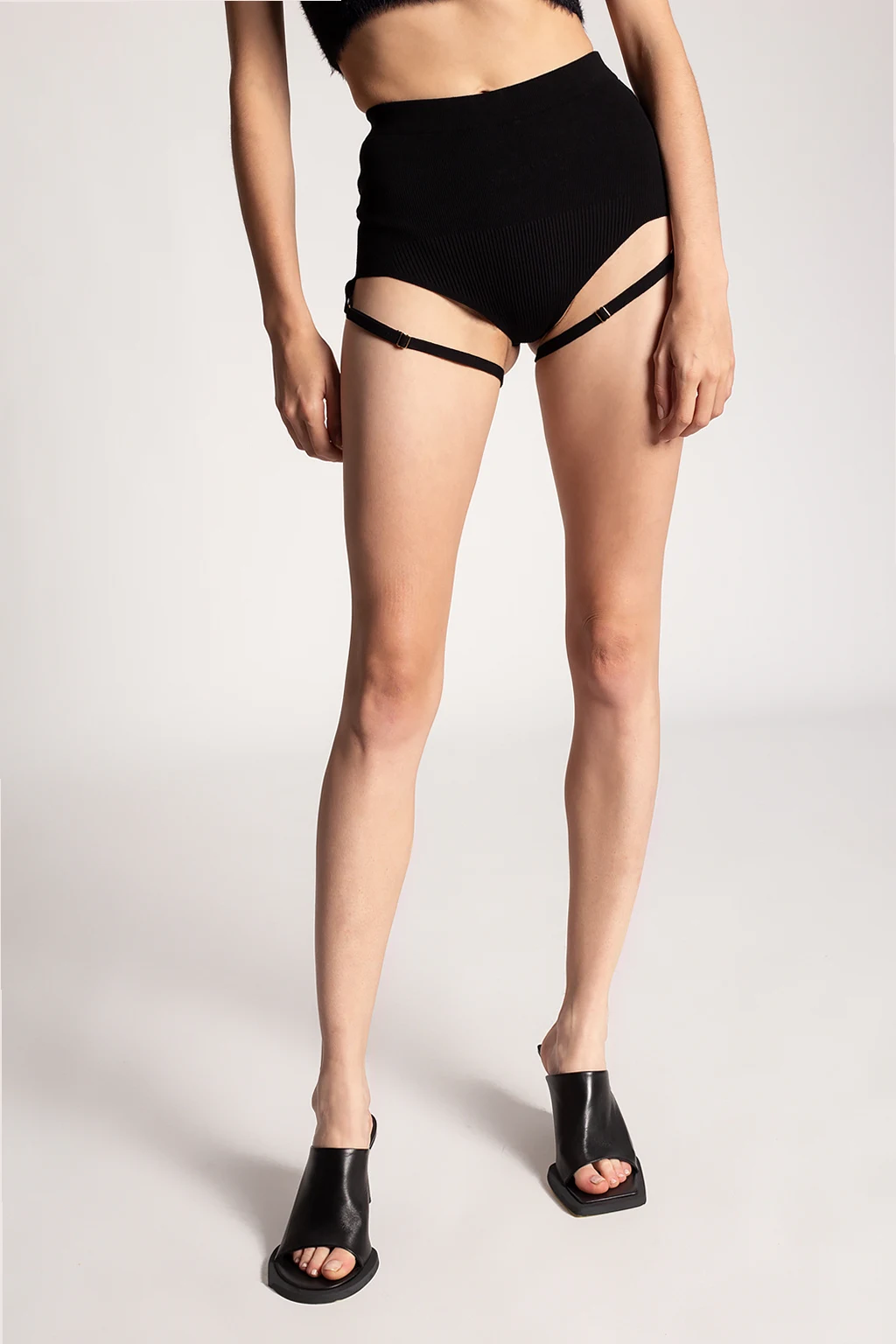 Czarne figi z wysokim stanem Jacquemus. Dekoracyjne paski z możliwością regulacji długości.