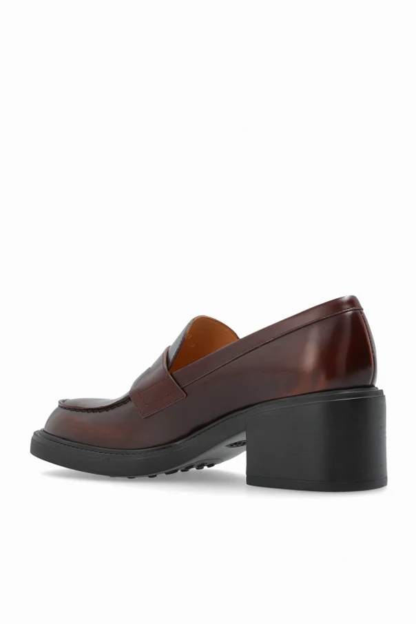 Buty typu loafers na obcasie marki Tod’s emanują ponadczasową elegancją i wyrafinowaniem. Klasyczna, zamknięta cholewka o wyważonej sylwetce, szerokim języku i zaokrąglonym nosku tworzy harmonijną całość, podkreślając subtelnie kobiecy charakter obuwia.