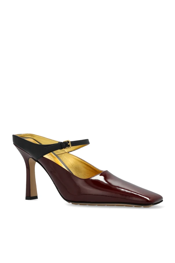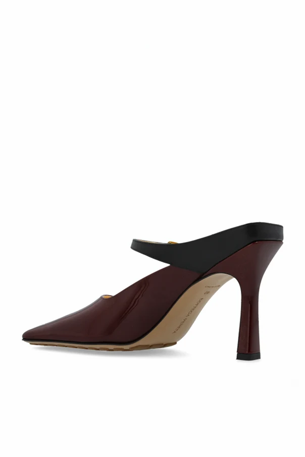 Klapki na obcasie ‘Andrea’ marki Bottega Veneta to wyrafinowana propozycja dla kobiet ceniących wyraziste rozwiązania i nowoczesną sylwetkę. Ten wyjątkowy model zachwyca głębokim, bordo kolorem skóry lakierowanej, która w połączeniu z delikatnym, czarnym paskiem na podbiciu tworzy niezwykle harmonijną, a zarazem odważną kompozycję.