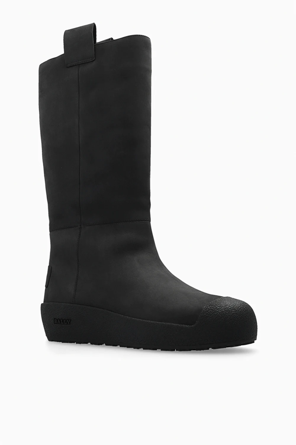 Czarne śniegowce model ‘Jackson’ Bally. Wykonane ze skóry. Ozdobione naszywką z wytłoczonym logo. Posiadają techniczną podeszwę składającą się z pięciu warstw: owczej i korkowej izolującej przed zimnem, gumy EVA zapewniającej dodatkowy komfort, watoliny z włókna bawełnianego, która została zaprojektowana tak, aby zapewnić długotrwałą trwałość i odporność oraz gumową podeszwę Vibram® Arctic Grip, która zapewnia maksymalną przyczepność na zimnych, oblodzonych lub zaśnieżonych powierzchniach.