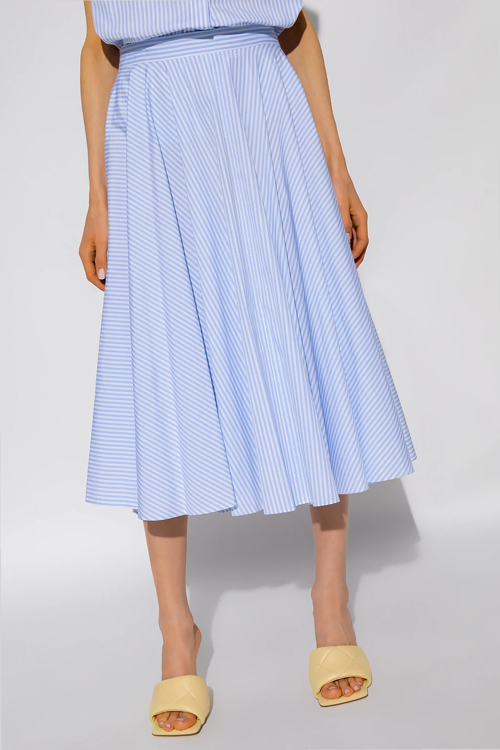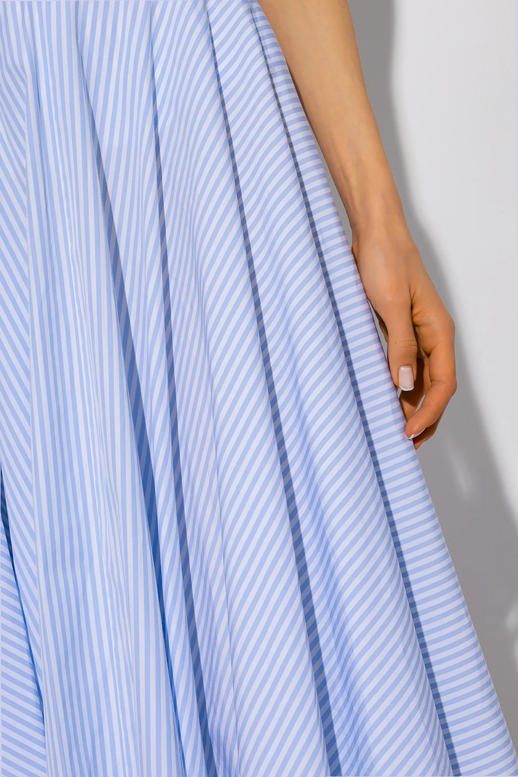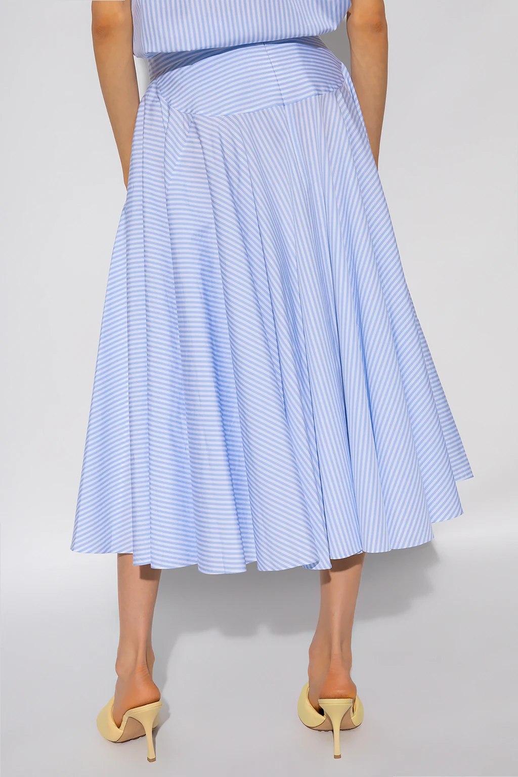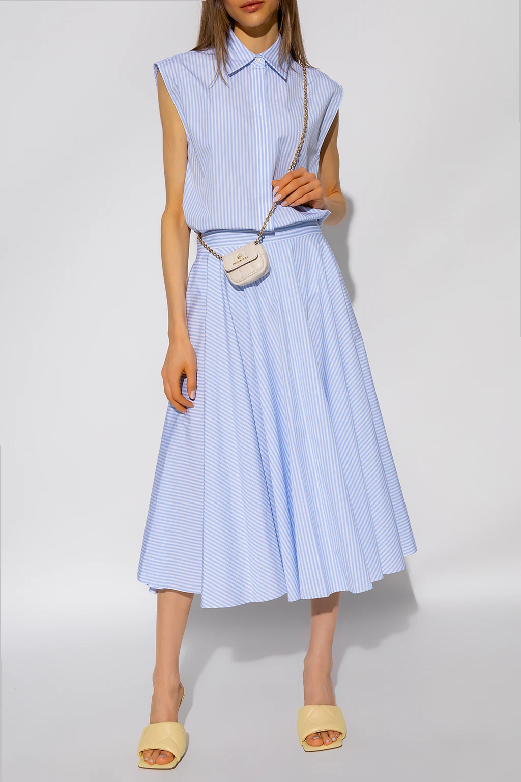 Biało-niebieska spódnica Michael Kors. Wykonana z bawełny organicznej. Z tyłu zapinana na kryty zamek oraz haftkę. Ozdobiona wzorem w pasy.