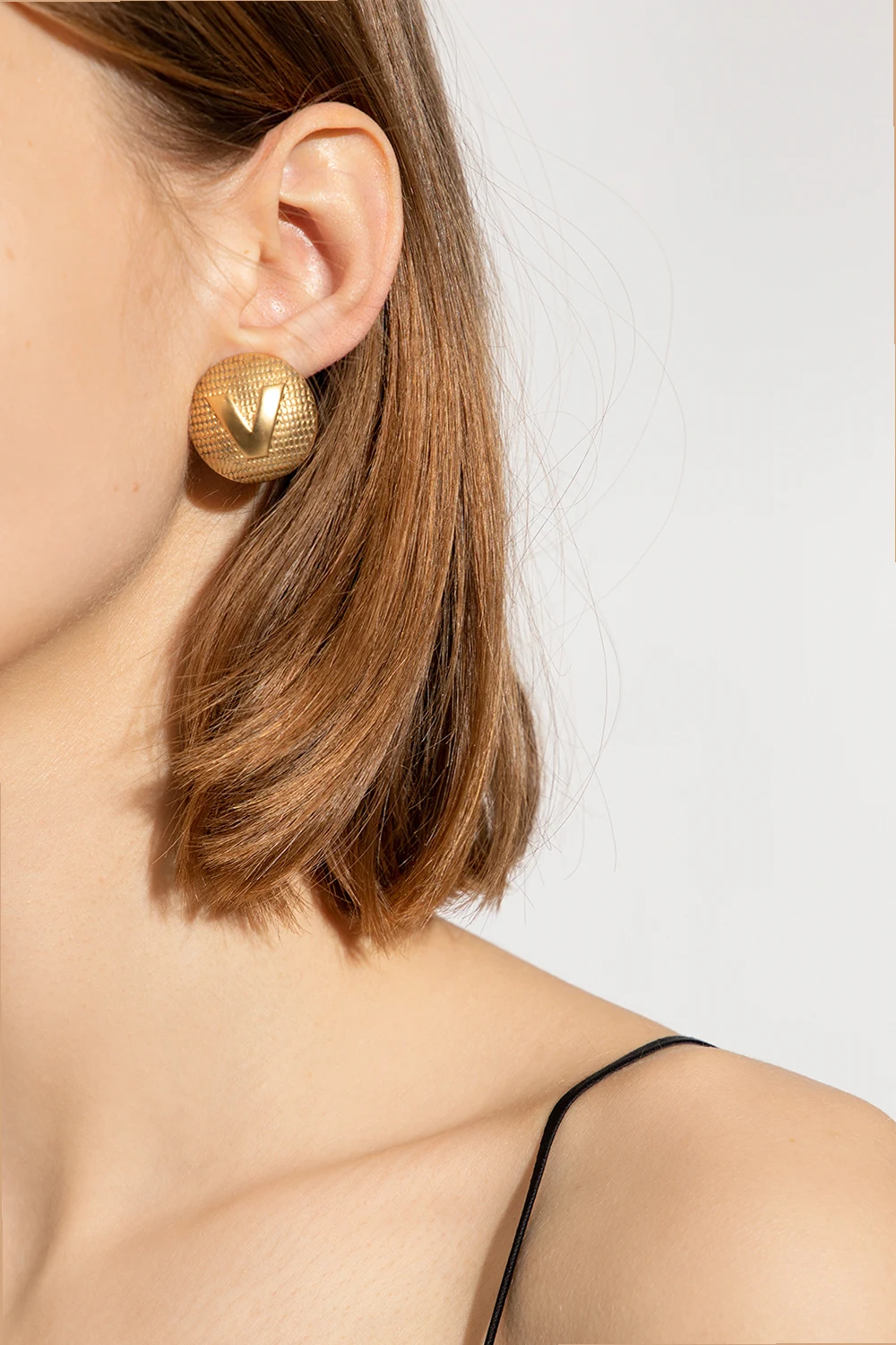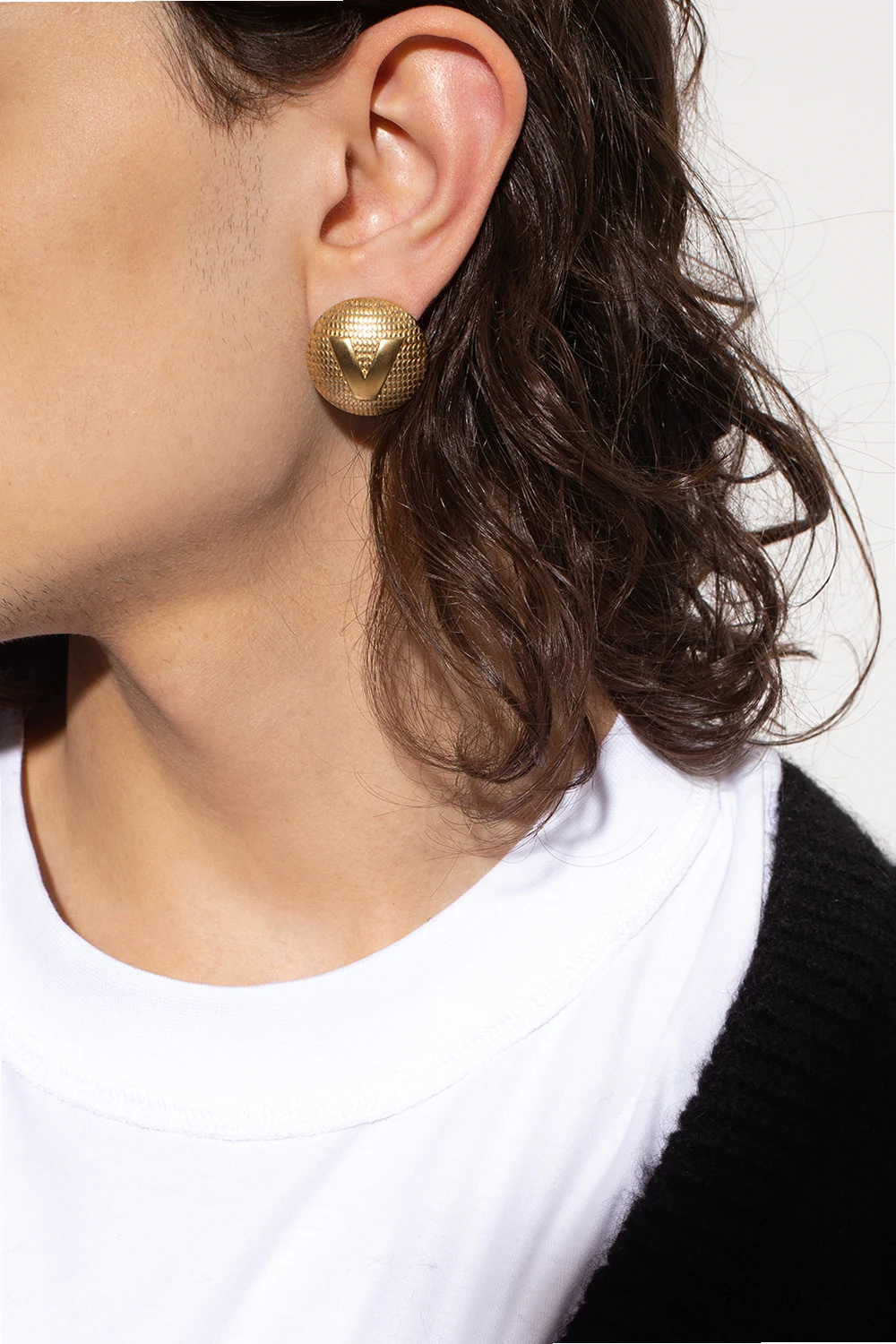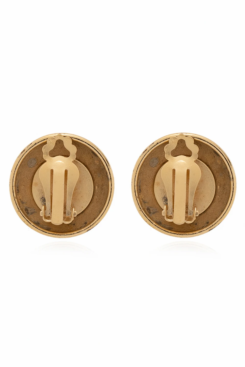 Mosiężne klipsy w kolorze postarzanego złota VETEMENTS. Ozdobione wypukłym wzorem oraz logo.