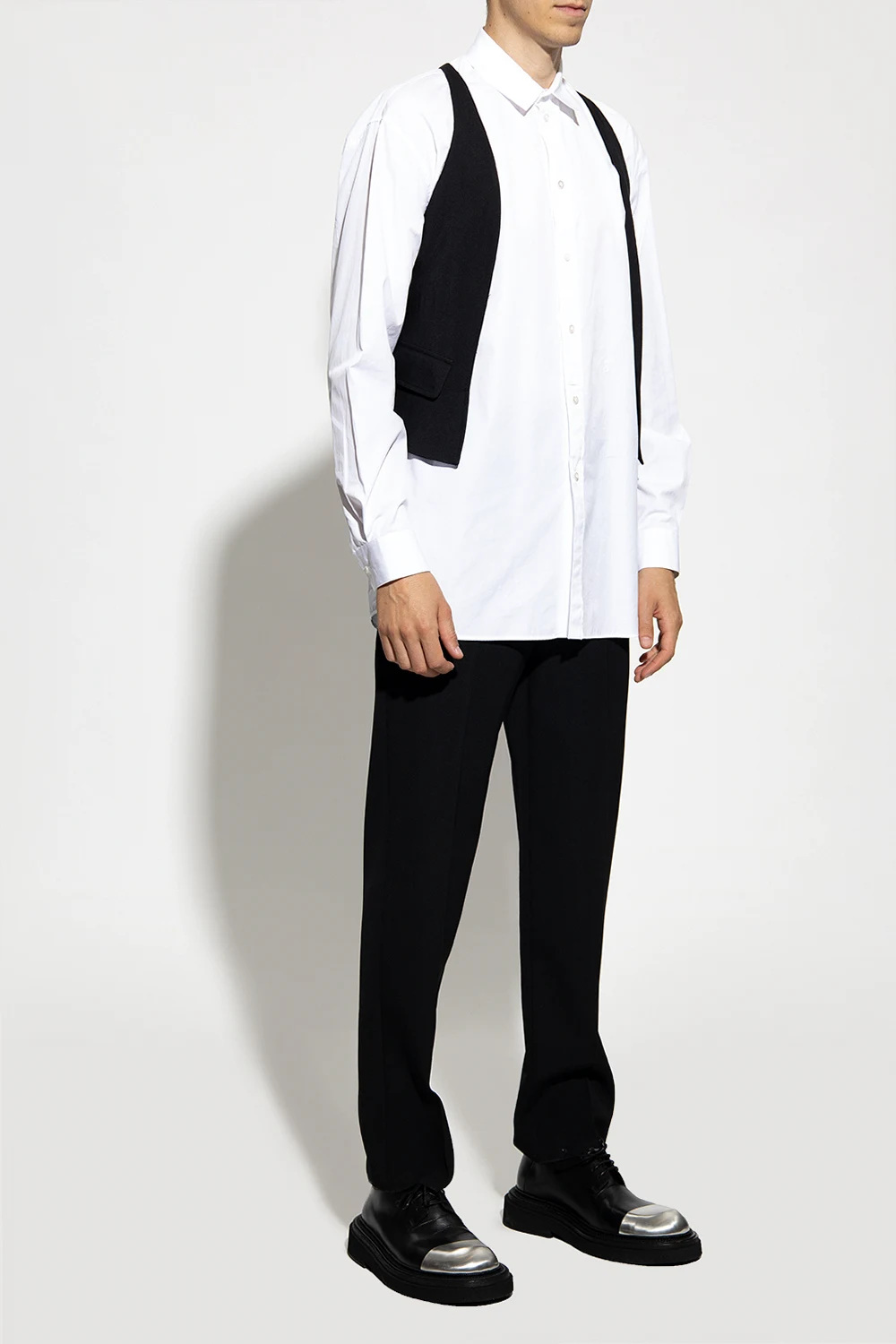 Czarne, sznurowane buty typu ‘derby’, model ‘Pollicione’ Marsell. Wykonane ze skóry. Zaokrąglony nosek wykończony metalową aplikacją w kolorze srebrnym. Czarna, masywna podeszwa wykonana z gumy.
