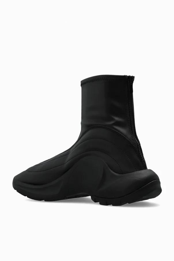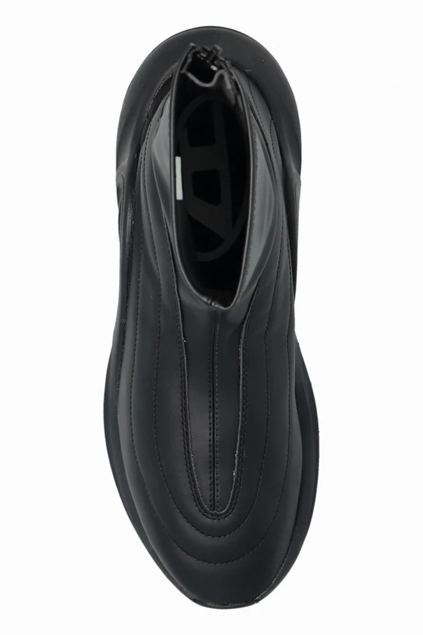 Buty sportowe D-RUNNER marki Diesel to kwintesencja futurystycznej elegancji i nowoczesnej sylwetki. Zaprojektowane z dbałością o każdy detal, te wyjątkowe buty typu ankle boot sięgają nieco za kostkę, oferując sportową lekkość oraz optyczne wysmuklenie stopy dzięki migdałowemu, delikatnie spiczastemu noskowi i obłemu profilowi.