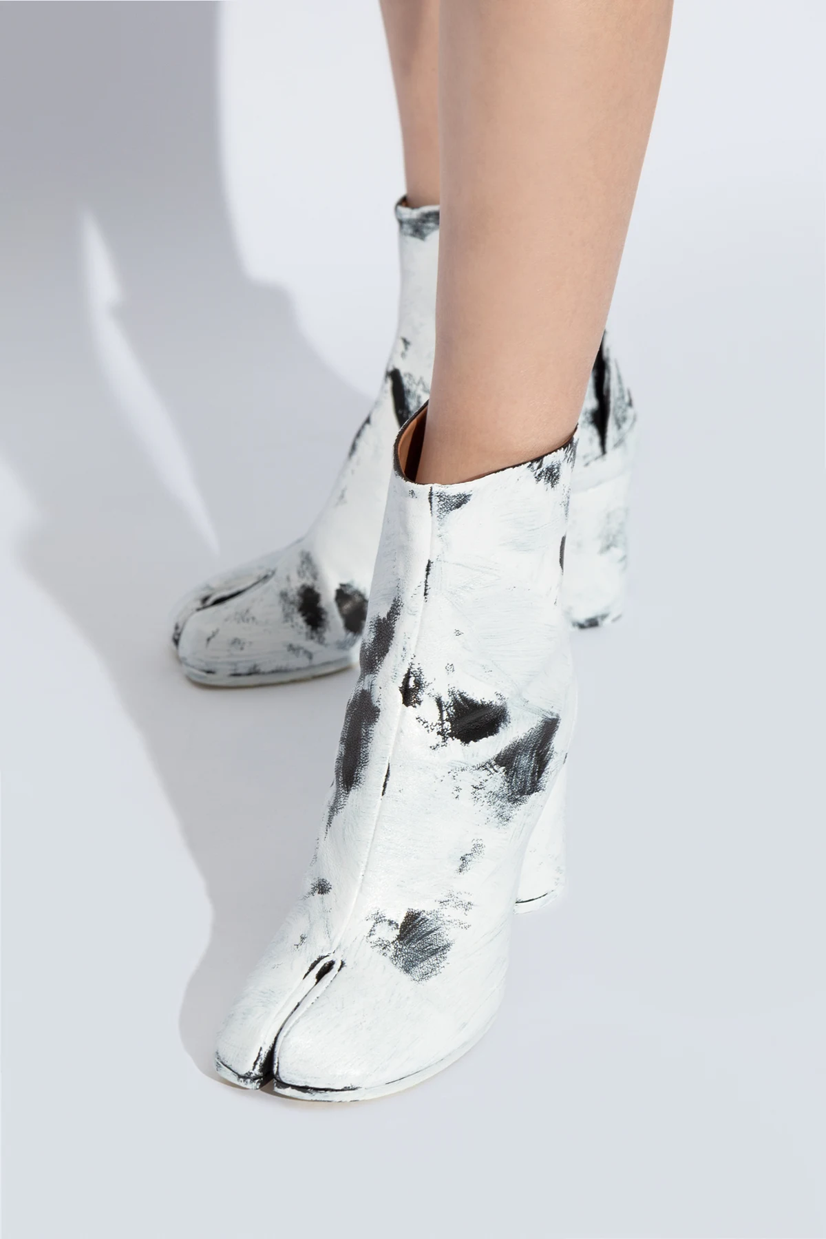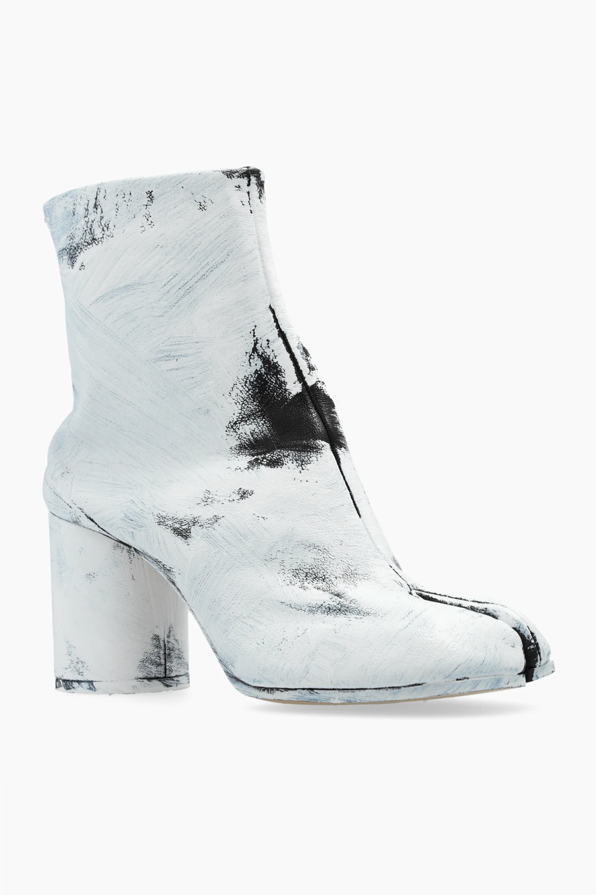Przedstawiamy Państwu wyjątkową propozycję od kultowej marki Maison Margiela - skórzane botki Tabi . Ten unikatowy model wyróżnia się nie tylko orientalną inspiracją, odzwierciedloną w charakterystycznym podziale na palce, ale również ekskluzywnym designem. Dominująca biel przełamana efektem rozbryzgu czarnej farby nadaje butom niepowtarzalny, artystyczny charakter.