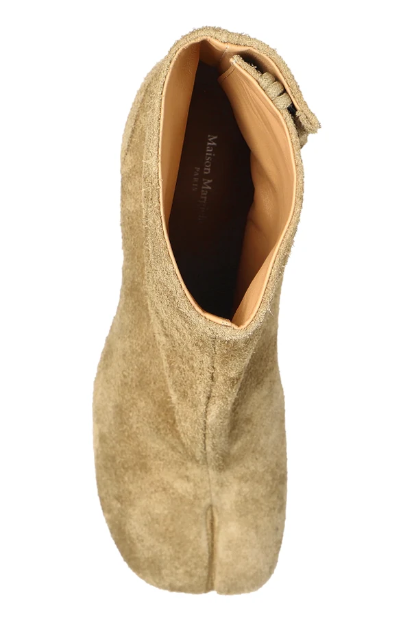 Botki na obcasie z wycięciem Tabi marki Maison Margiela to wyjątkowe dzieło sztuki obuwniczej, stanowiące wyraz niebanalnej estetyki i doskonałego rzemiosła. Charakterystyczny podział przodu inspirowany japońską tradycją „Tabi” nadaje tej formie niepowtarzalnego, awangardowego wyrazu, podkreślając jej silną indywidualność.