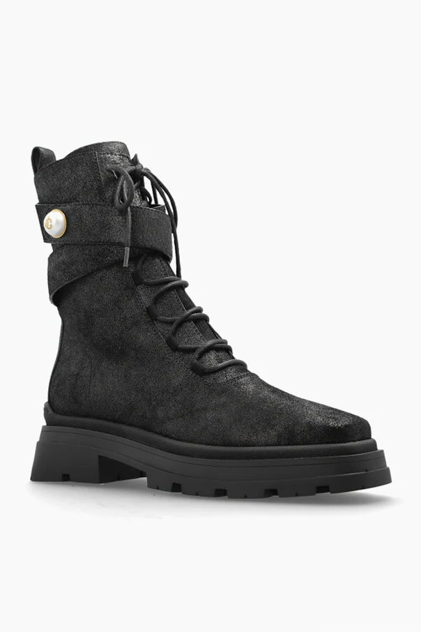 Botki ‘Noemi’ od mistrza sztuki obuwniczej, Jimmy’ego Choo, to ukłon w stronę wyrafinowania i wyrazistej estetyki. Klasyczna, masywna sylwetka typu ankle boot z szeroką, komfortową cholewką sięgającą ponad kostkę doskonale łączy elegancję z nowoczesnością. O wyjątkowości modelu świadczy jednolita czerń skóry licowej lub zamszowej, której matowe wykończenie subtelnie opalizuje w świetle, podkreślając kunszt rzemieślniczy.