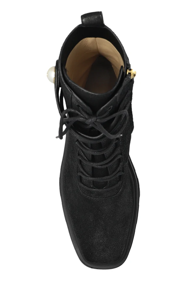 Charakterystyczne detale, takie jak efektowny guzik o perłowym połysku z metalicznym obramowaniem oraz tłoczone oznaczenie marki na tyle podeszwy, czynią ten model niepowtarzalnym. Doskonałej jakości skórzane wnętrze i wytrzymała gumowa podeszwa z wyrazistym bieżnikiem zapewniają komfort noszenia nie tylko na wyjścia wieczorowe, lecz także na co dzień.